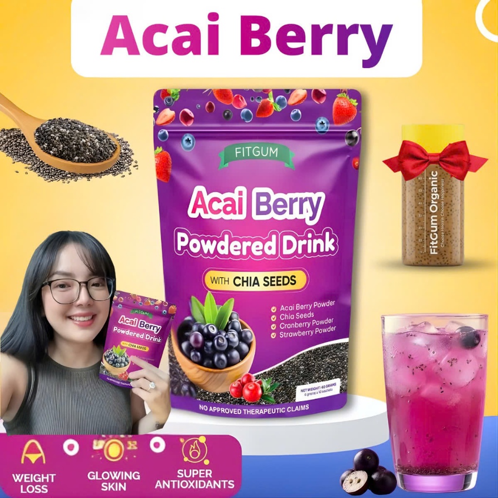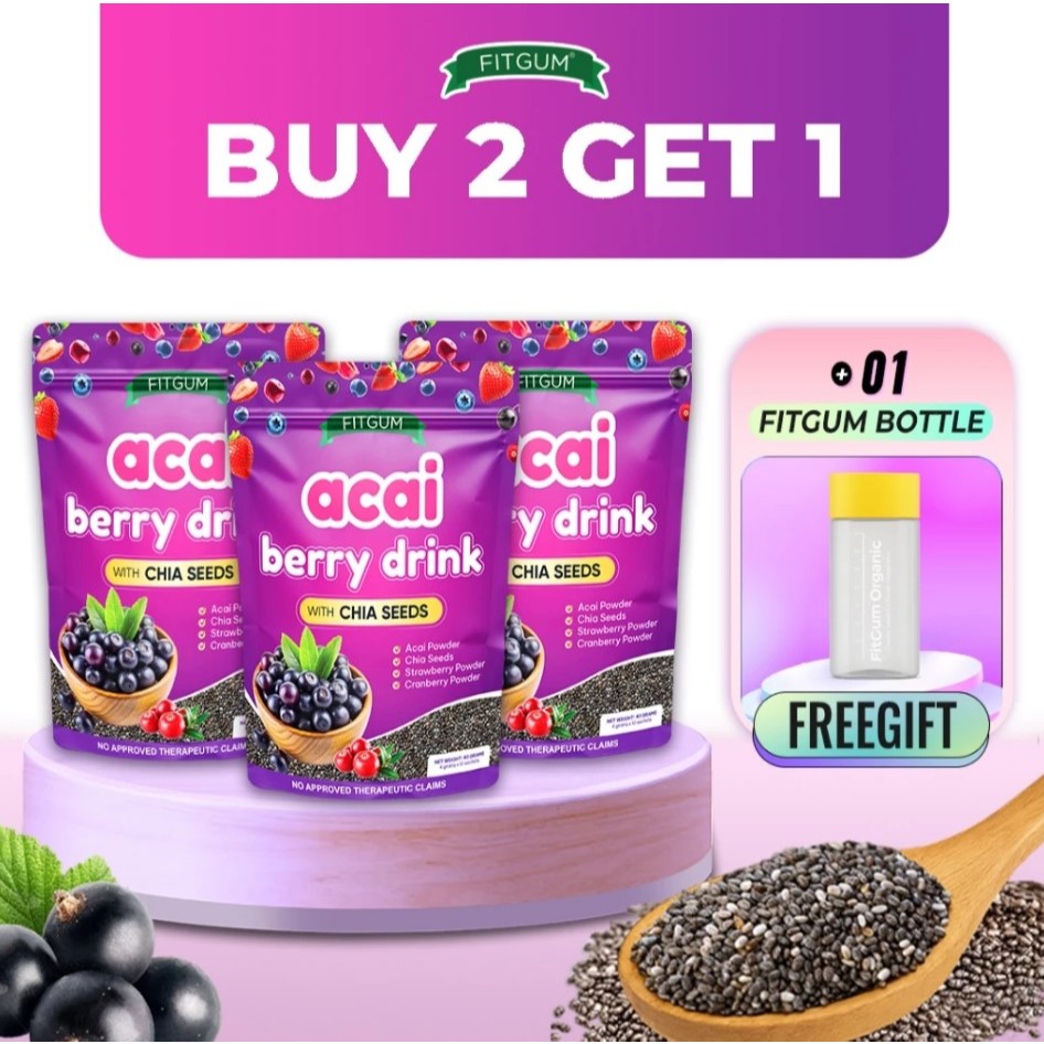 [FDA APPROVED + FREE BOTTLES] ONLY 179P/Pack - FITGUM Acai Berry Drink with Chia Seeds