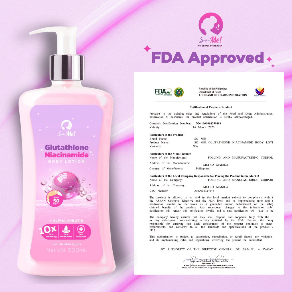 [FDA APPROVED] SO ME Glutathione Niacinamide Body Lotion with SPF50 PA+++