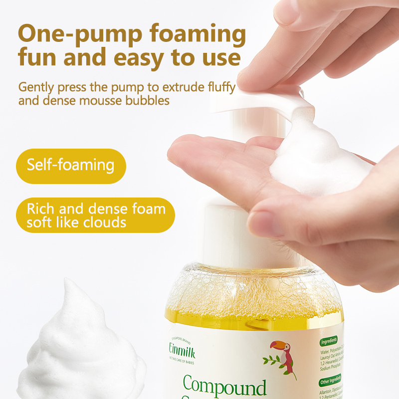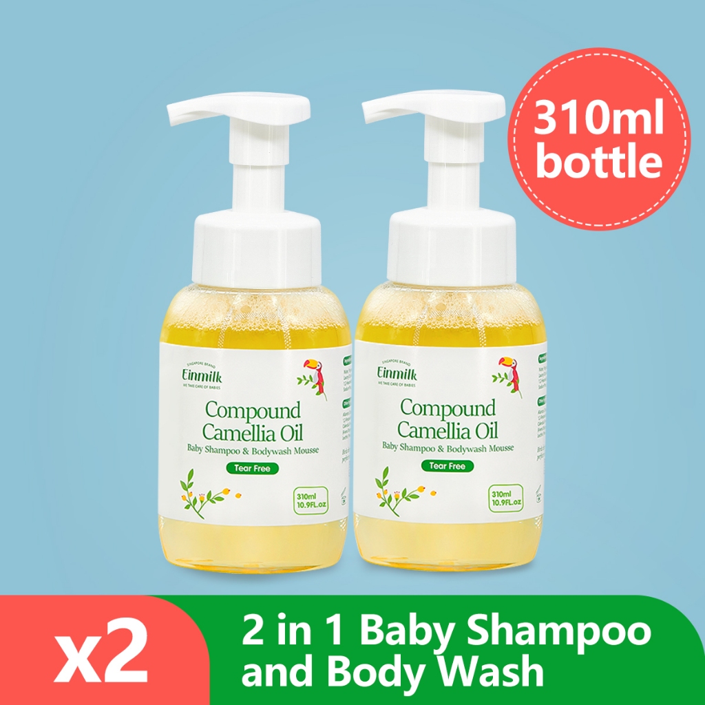[FDA] Einmilk Baby Foam Mousse Wash & Shampoo 2 in 1 Natural Plant-Based Foam Tear-Free 310ml