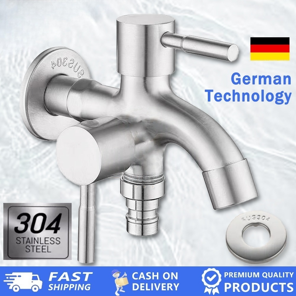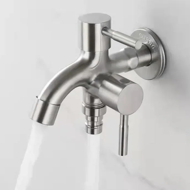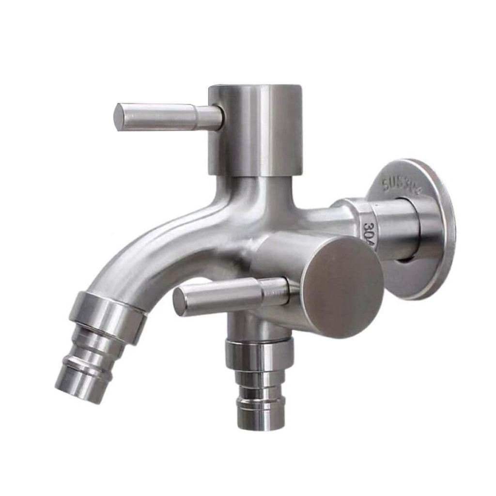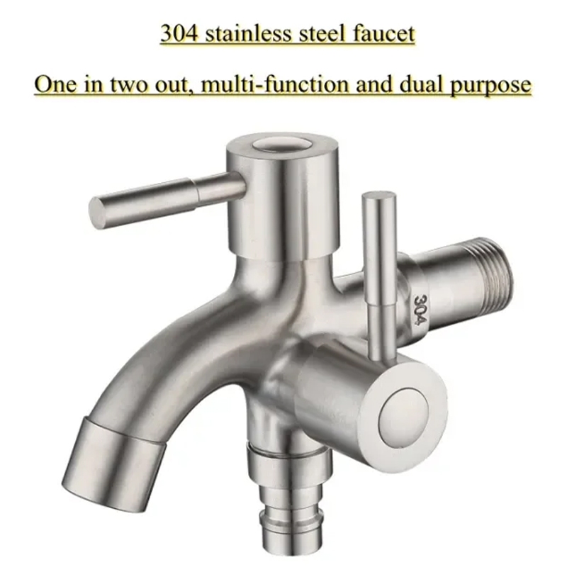 [FREE SHIPPING]304 stainless steel 2 way faucet valvet bibcock faucet 2 in1 out head 2 way water tap