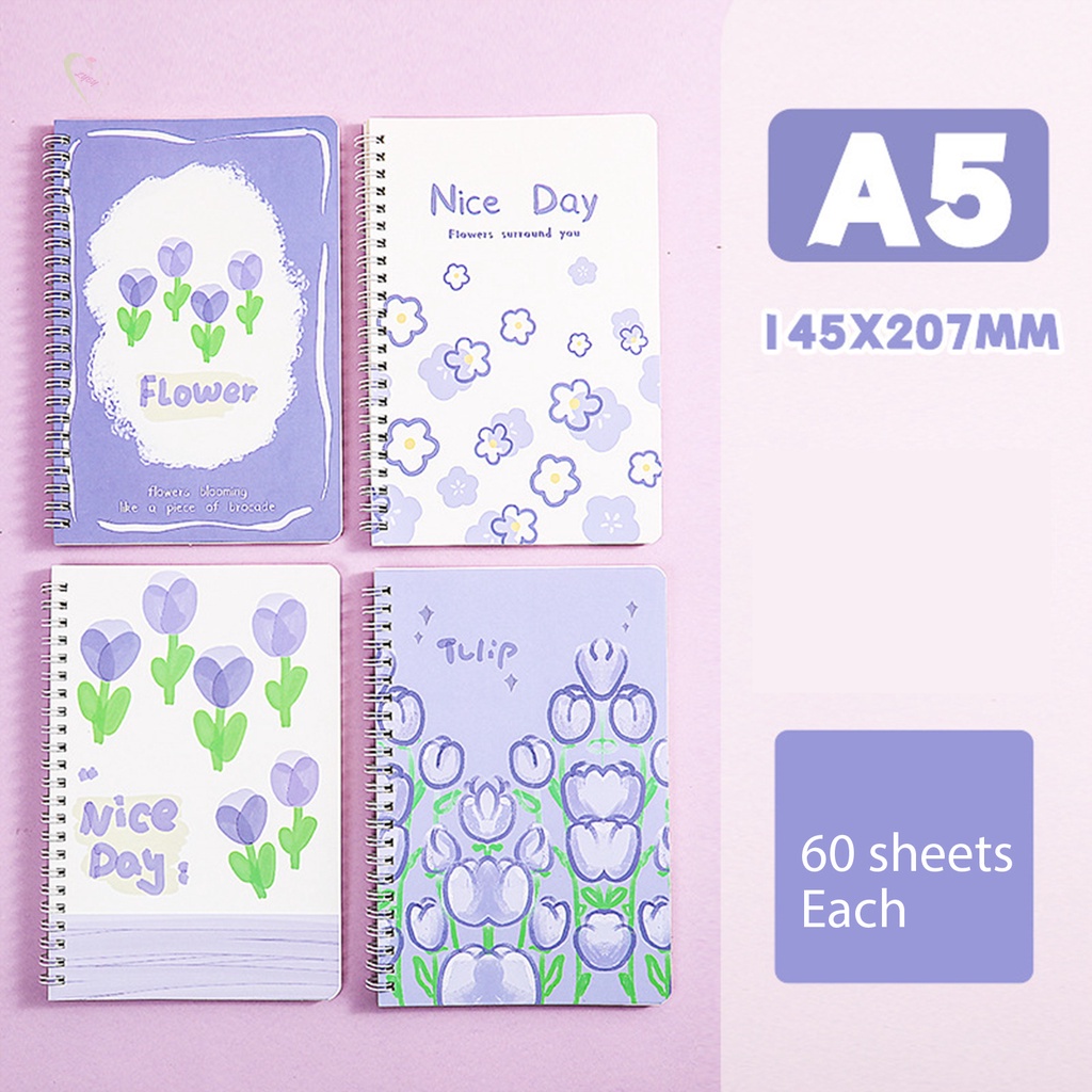 [Fast Delivery] A5 Coils Notebook Creative Diary Art Flower Stationery Book Student School Supplies