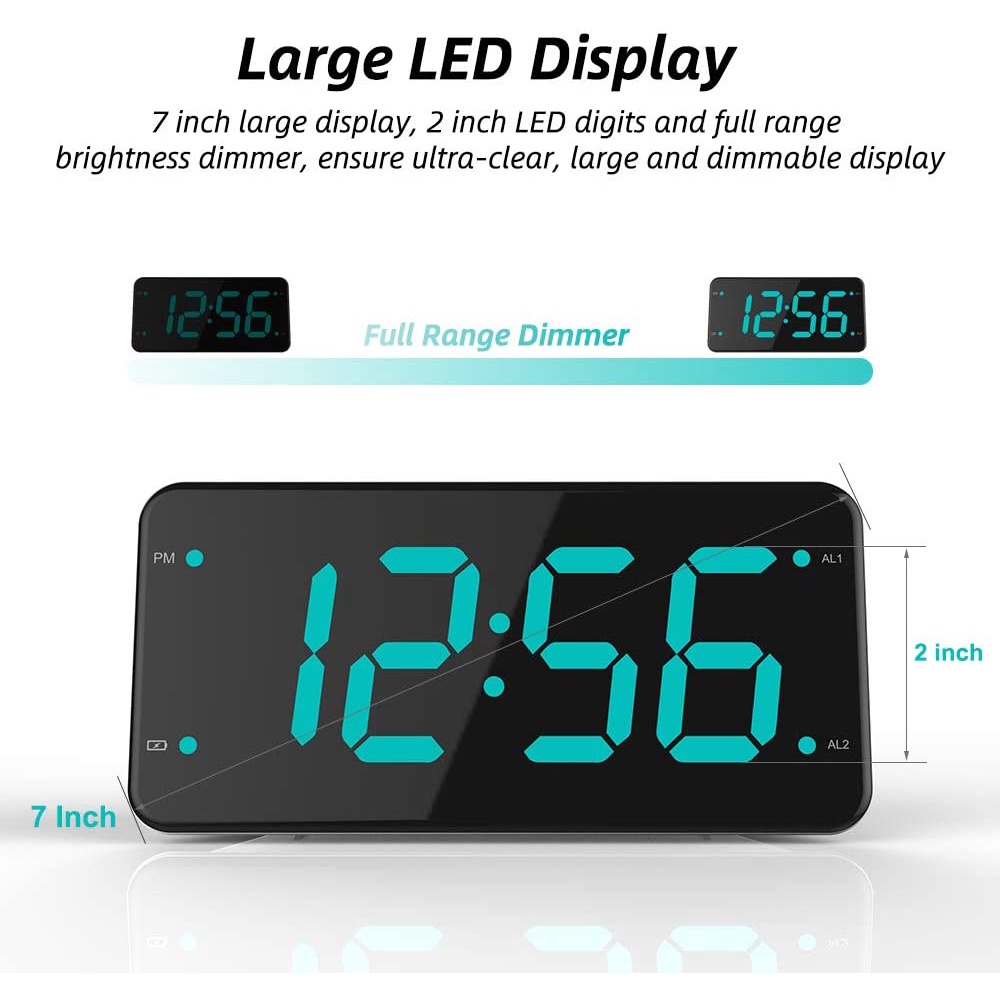 [Fast Delivery COD]Strong Vibration and Digital Loud Alarm Clock with Bed Shaker, Dual Alarms for Heavy Sleepers, Deaf and Hard of Hearing, 2 Charger Ports, 7-Inch LCD, Full Range Dimmer LED