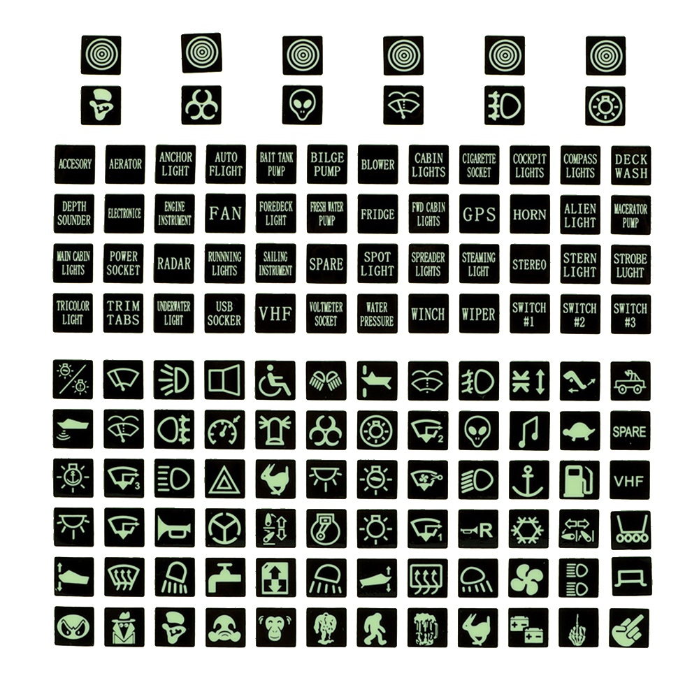 [ Featured ] 1 Sheet Glowing Car Push-button Sticker / Auto Instrument Panel Button Sticker / Door Window Lift Control Panel Decals / Car Truck Marine Boat Rocker Switch Label