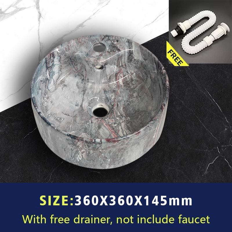 [Free Drainer] TAIWAN Ceramic Counter and Wall Lavatory Wash Basin Black Gold Marble Design Lavatory
