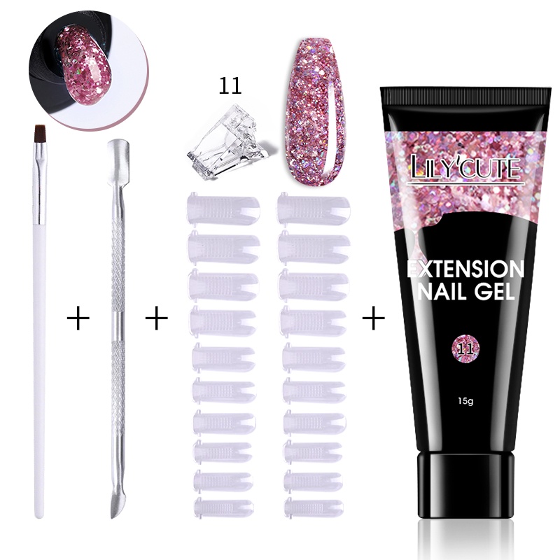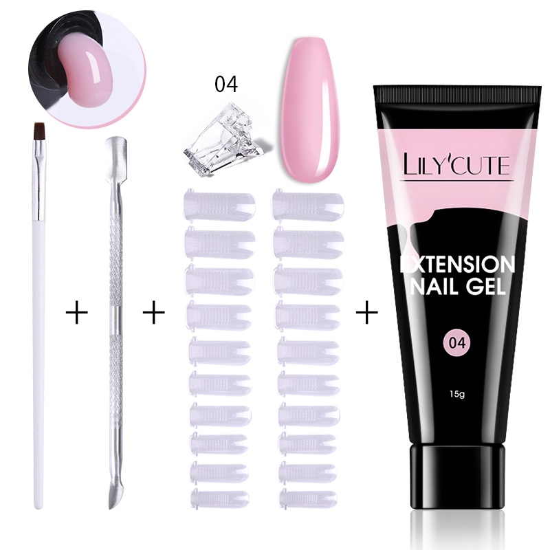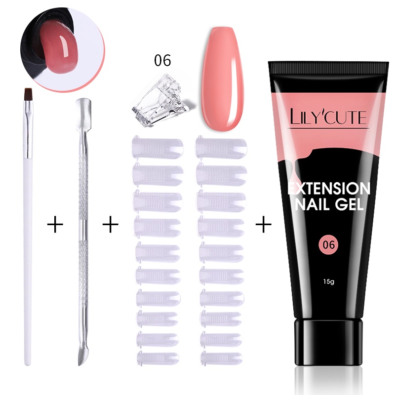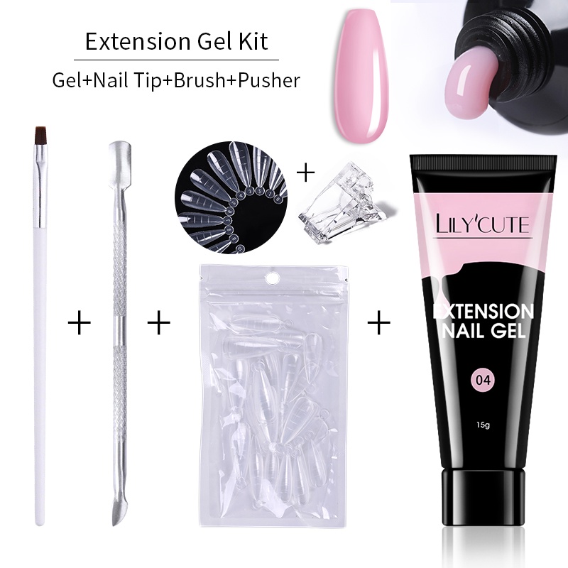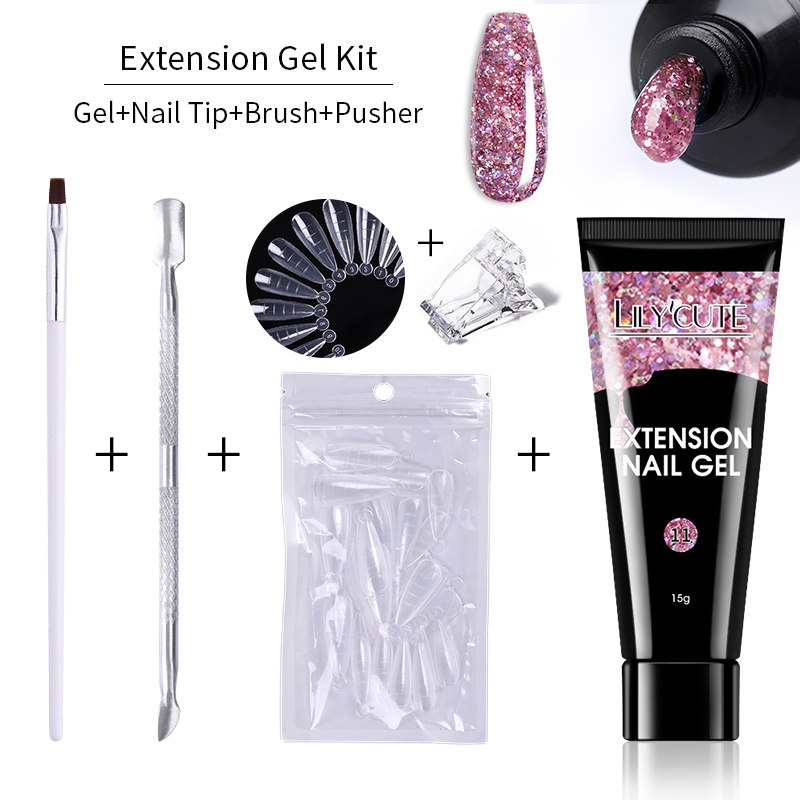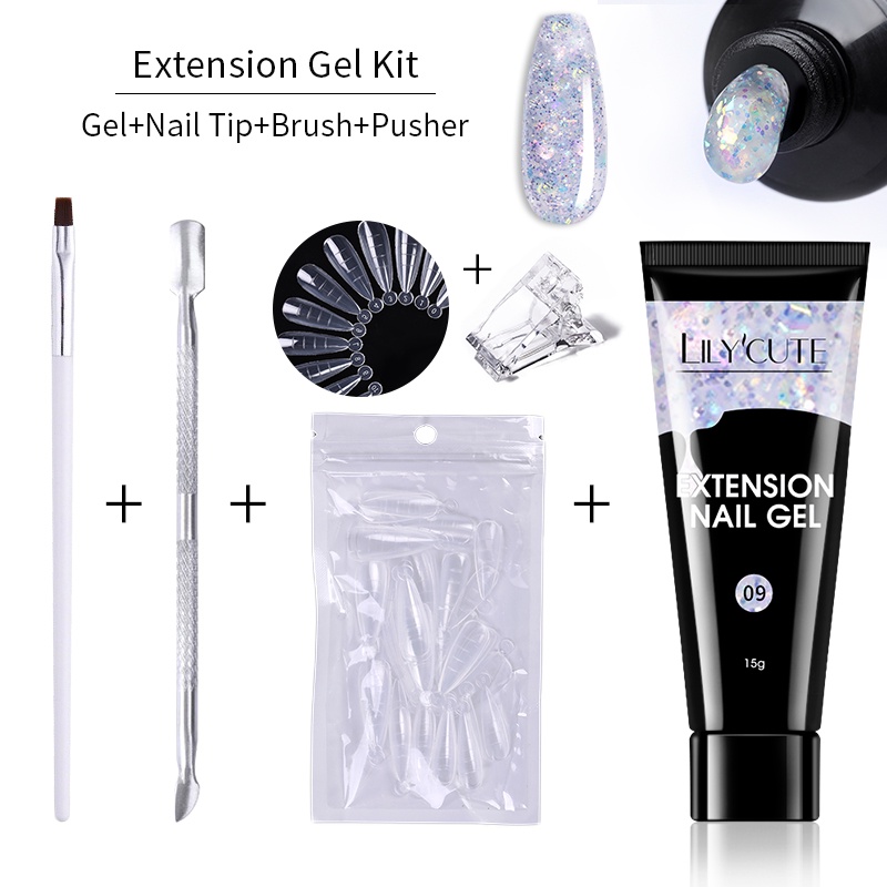[Free Gift] Lilycute 16Pcs Extension Gel Nail Polish Led Lamp Set Base Top Coat Brush Starter Kit Poly Nail Gel Set Acrylic Fast Building Finger
