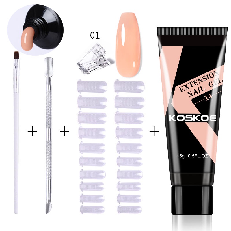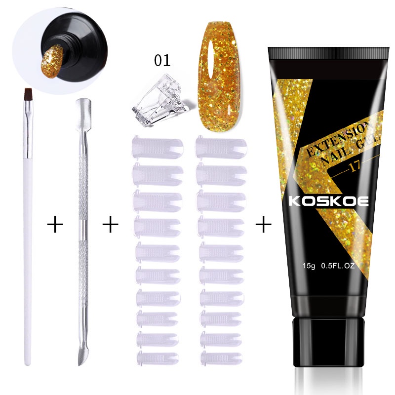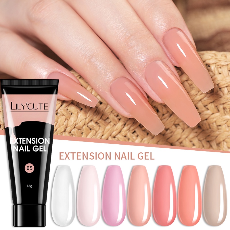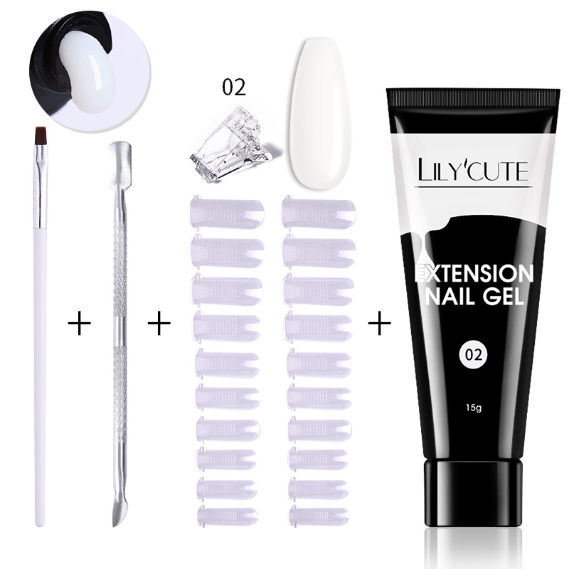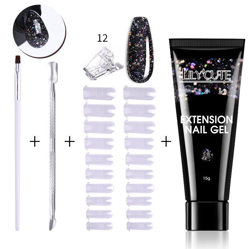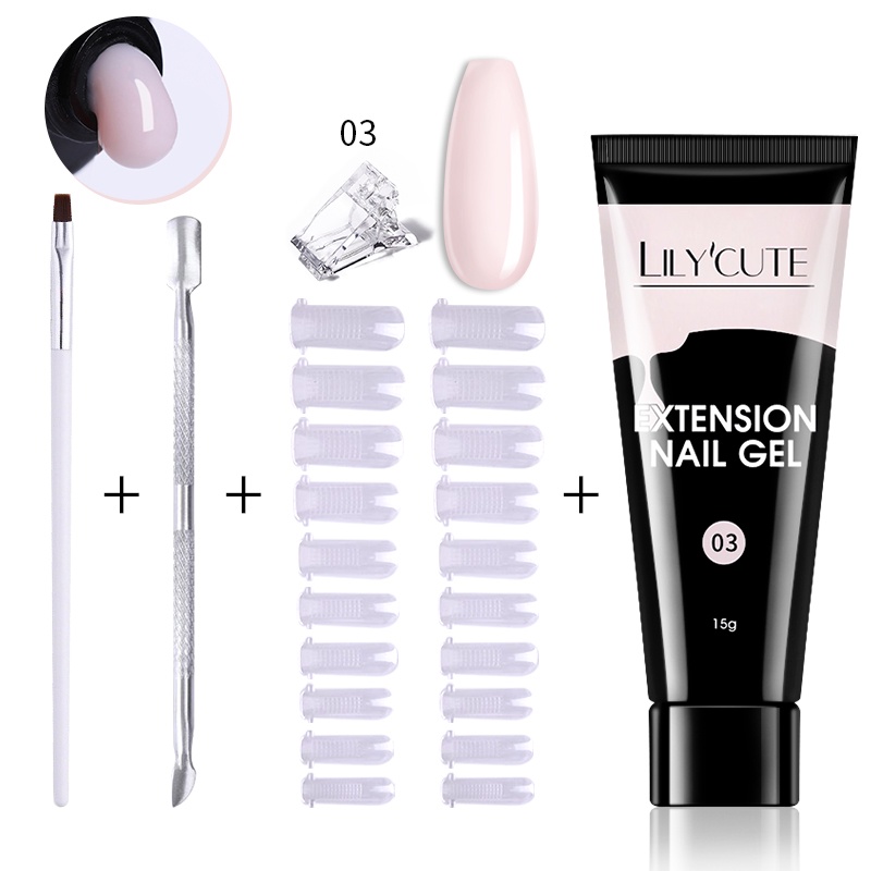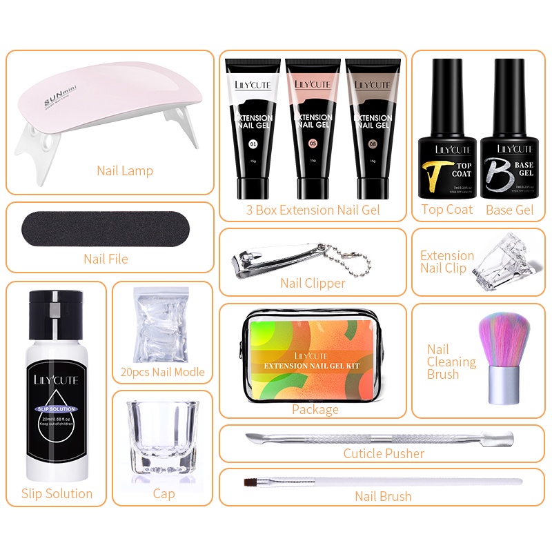 [Free Gift] Lilycute 16Pcs Extension Gel Nail Polish Led Lamp Set Base Top Coat Brush Starter Kit Poly Nail Gel Set Acrylic Fast Building Finger