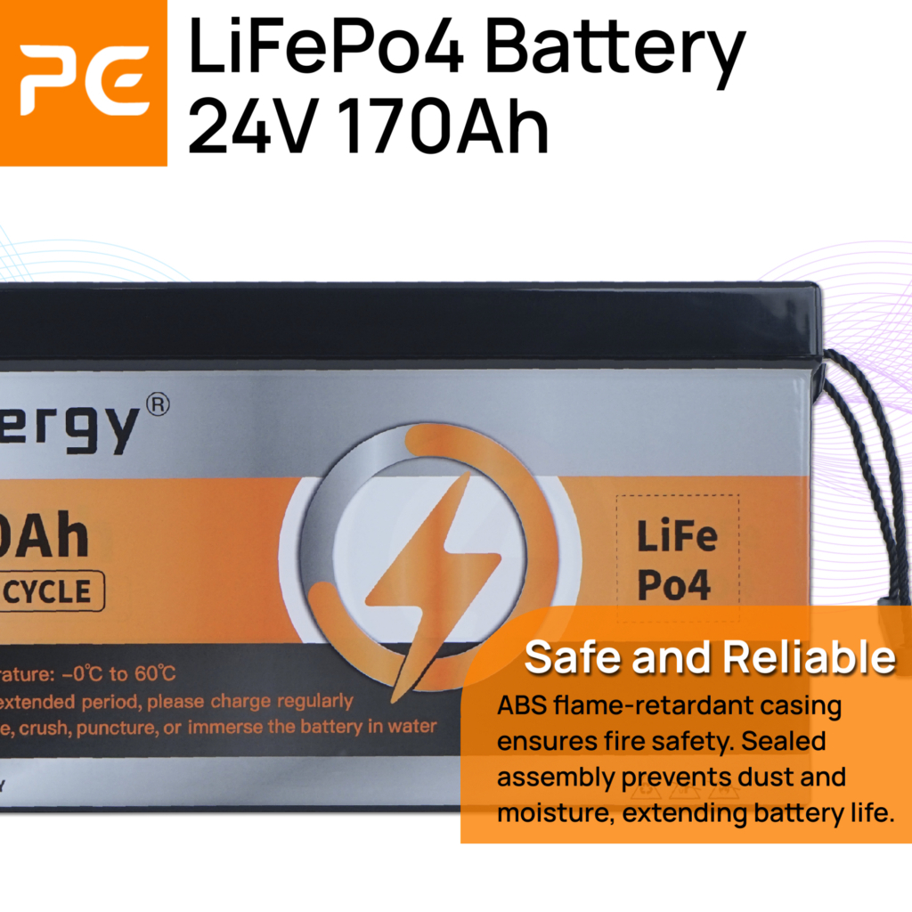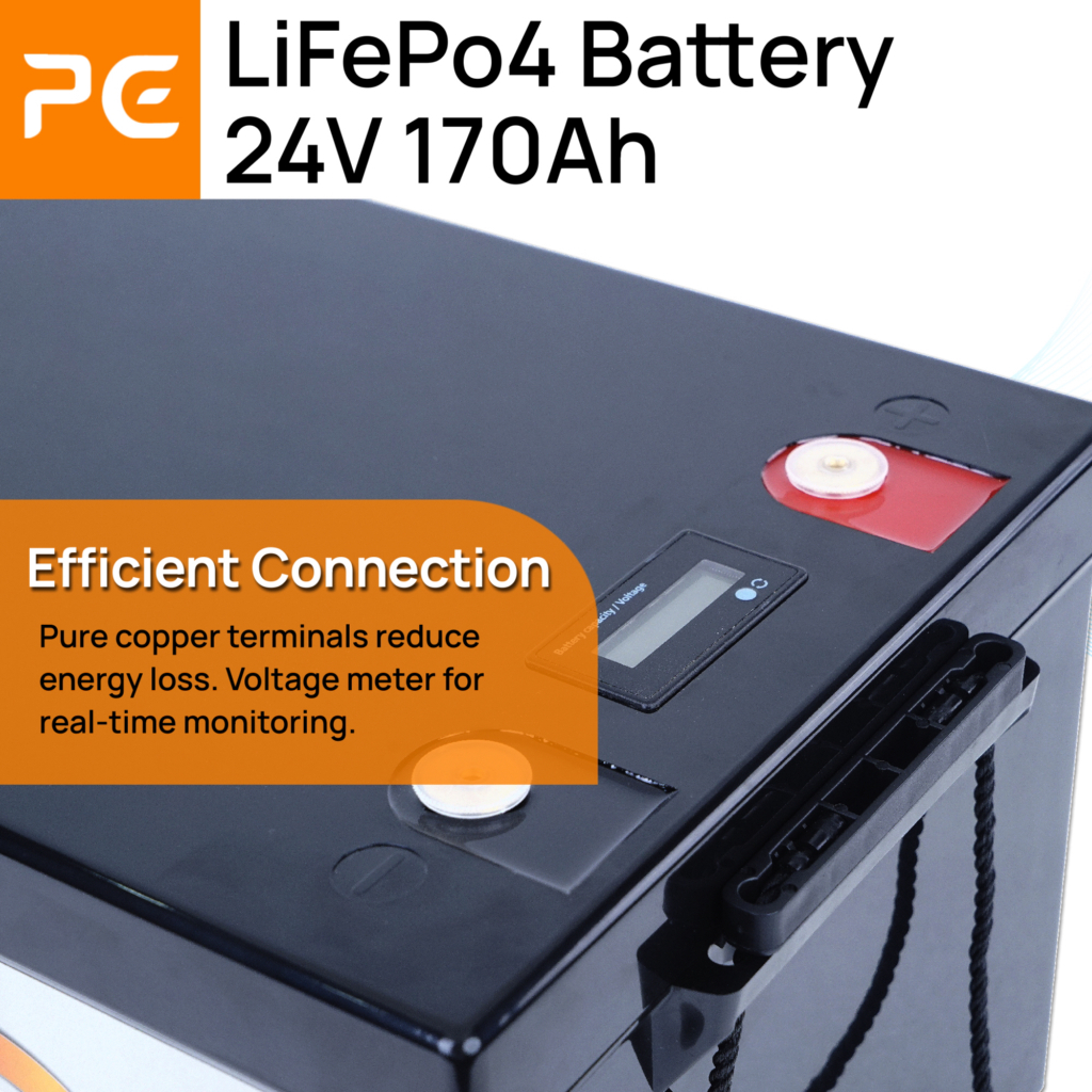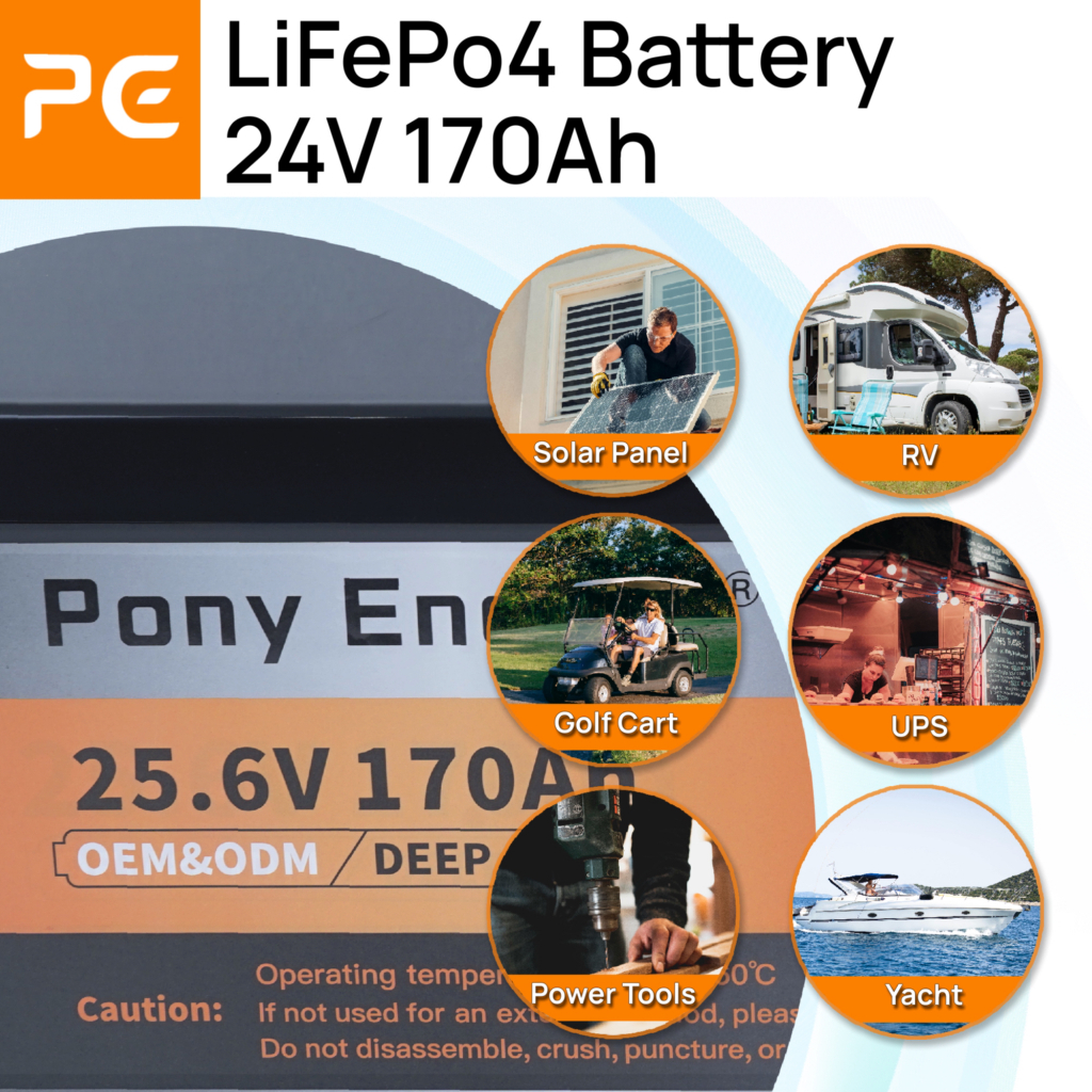【Free charge】PonyEnergy 24V 170Ah LiFePO4 Battery, 4352Wh, VoltDisplay & BMS(100A), Series-Con