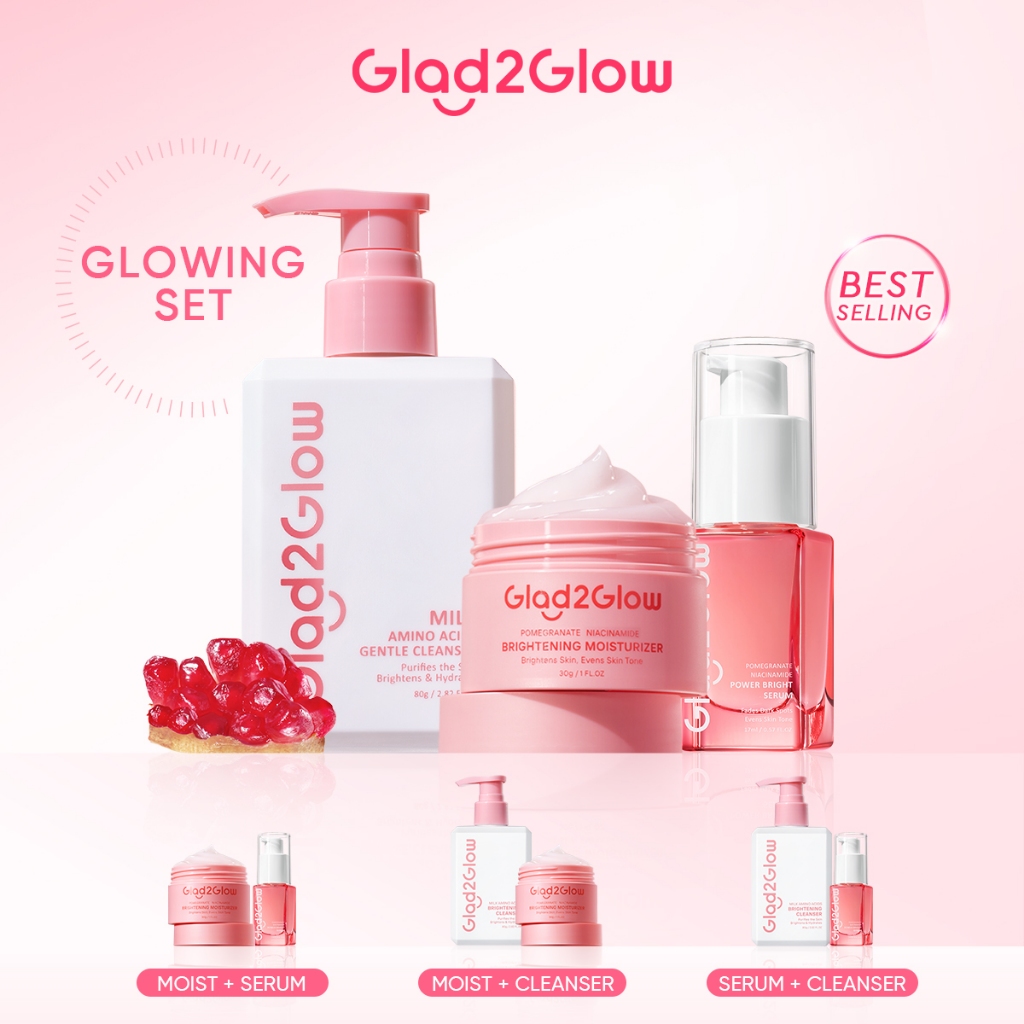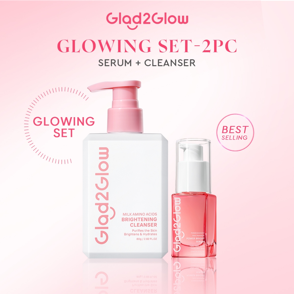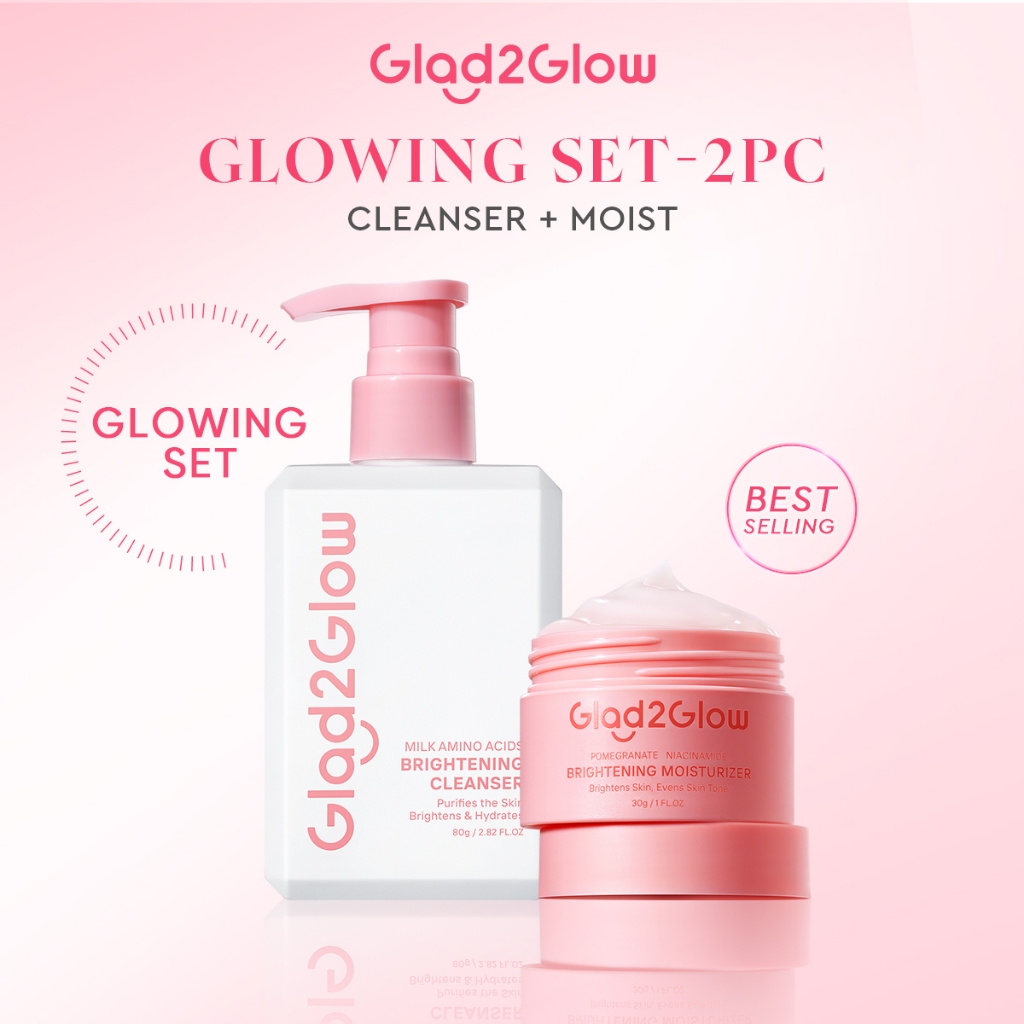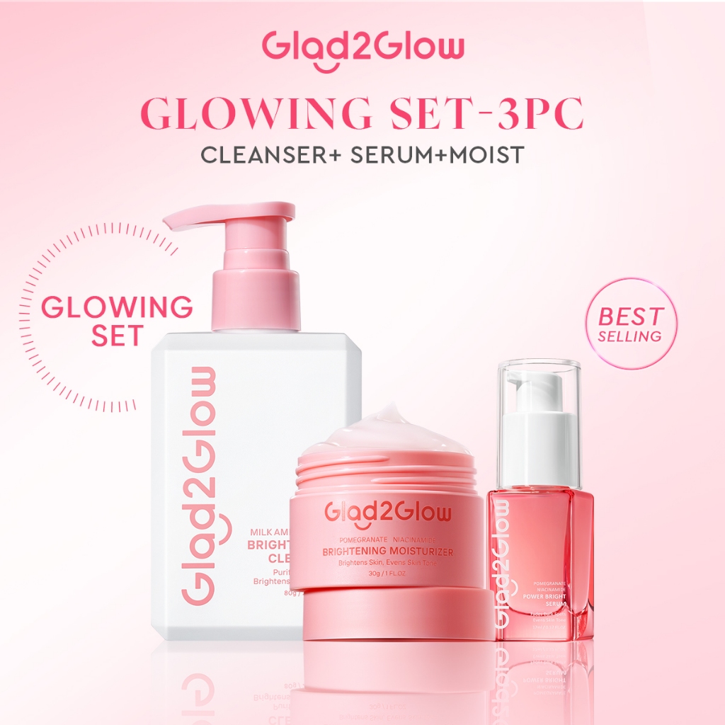 [HOT] Glad2Glow 3PCS Brightening Set Facial Moisturizer & Serum For Face & Milk Facial Wash Cleanser