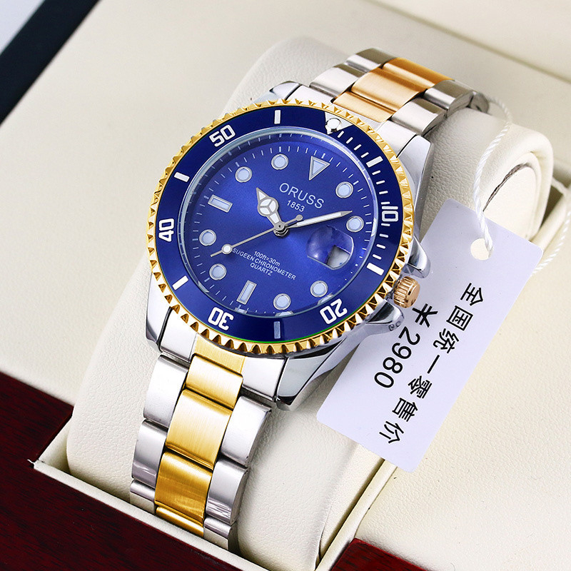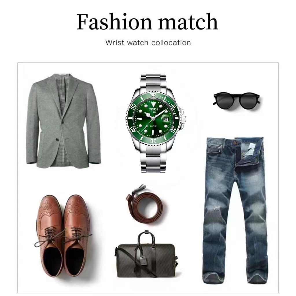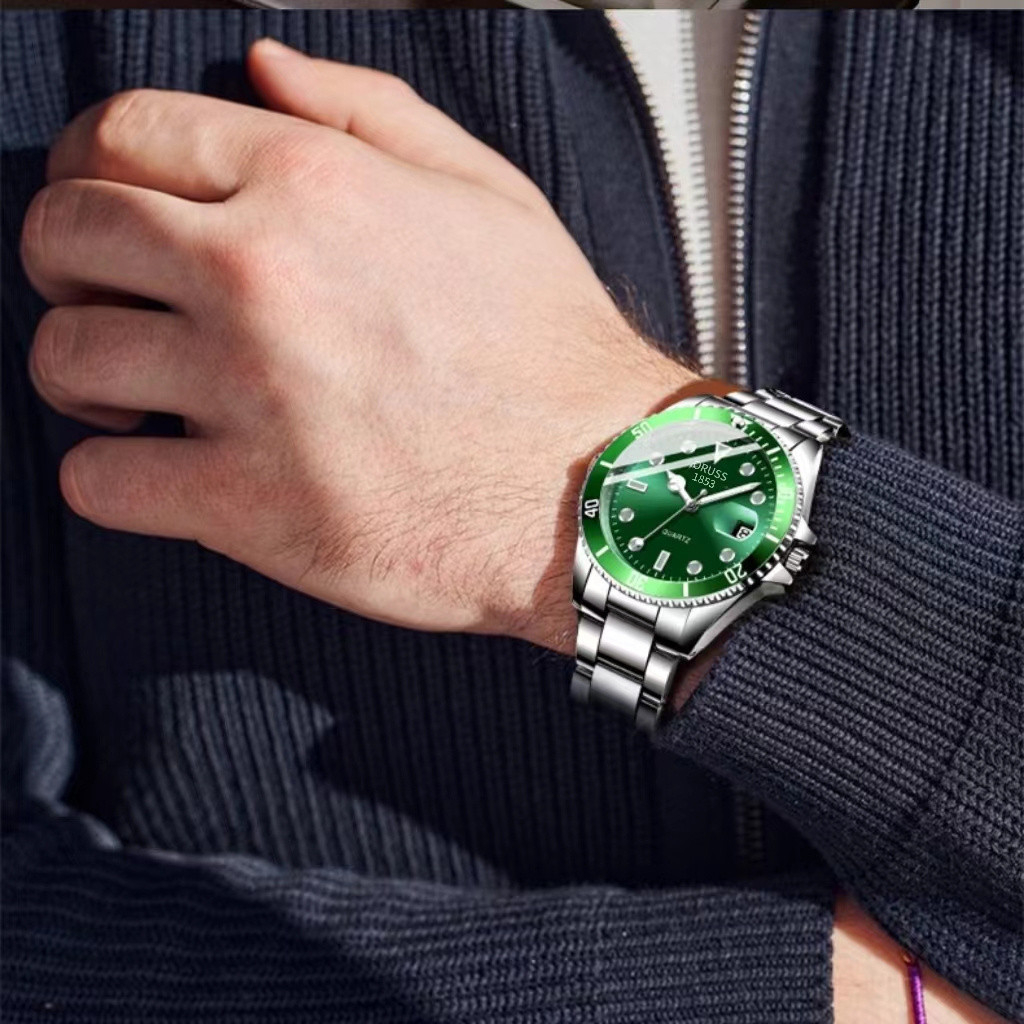 [Gift][With Box]ORUSS Original Brand Men Luxury Stainless Steel Calendar Luminous Waterproof Silver Watch Analog Fashion Business Automatic Quartz Watch For Men
