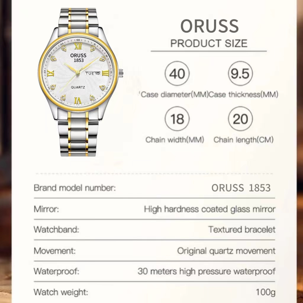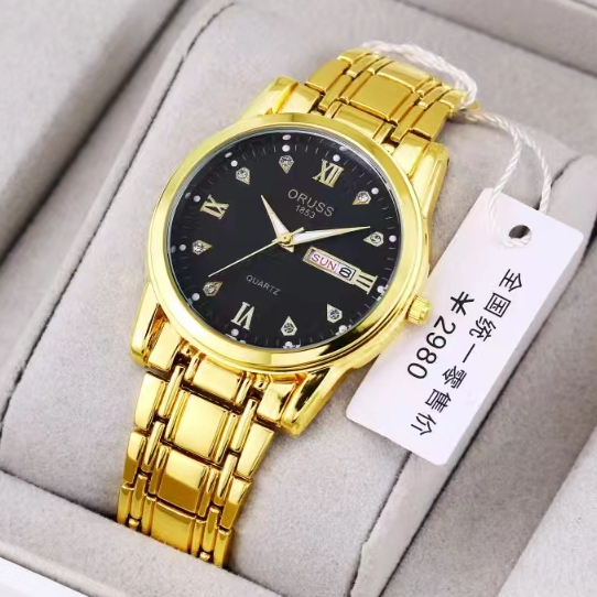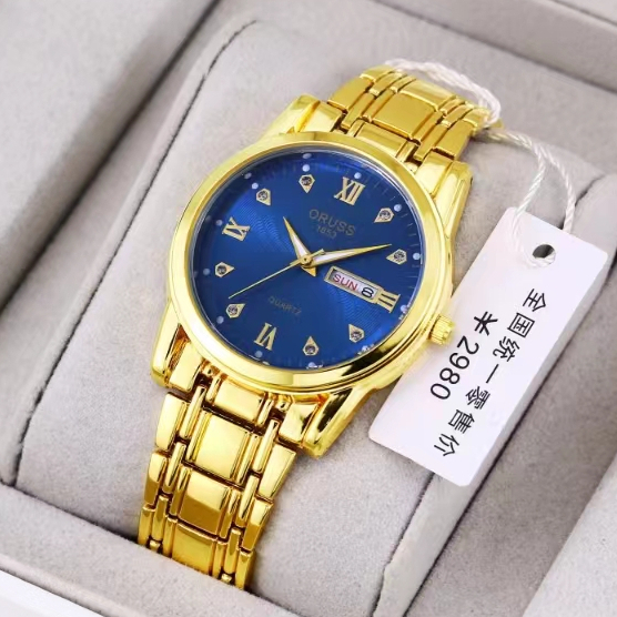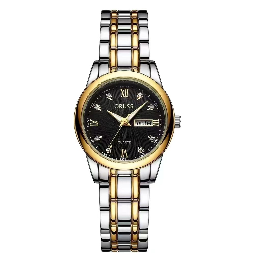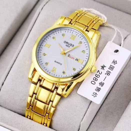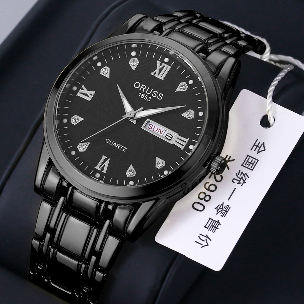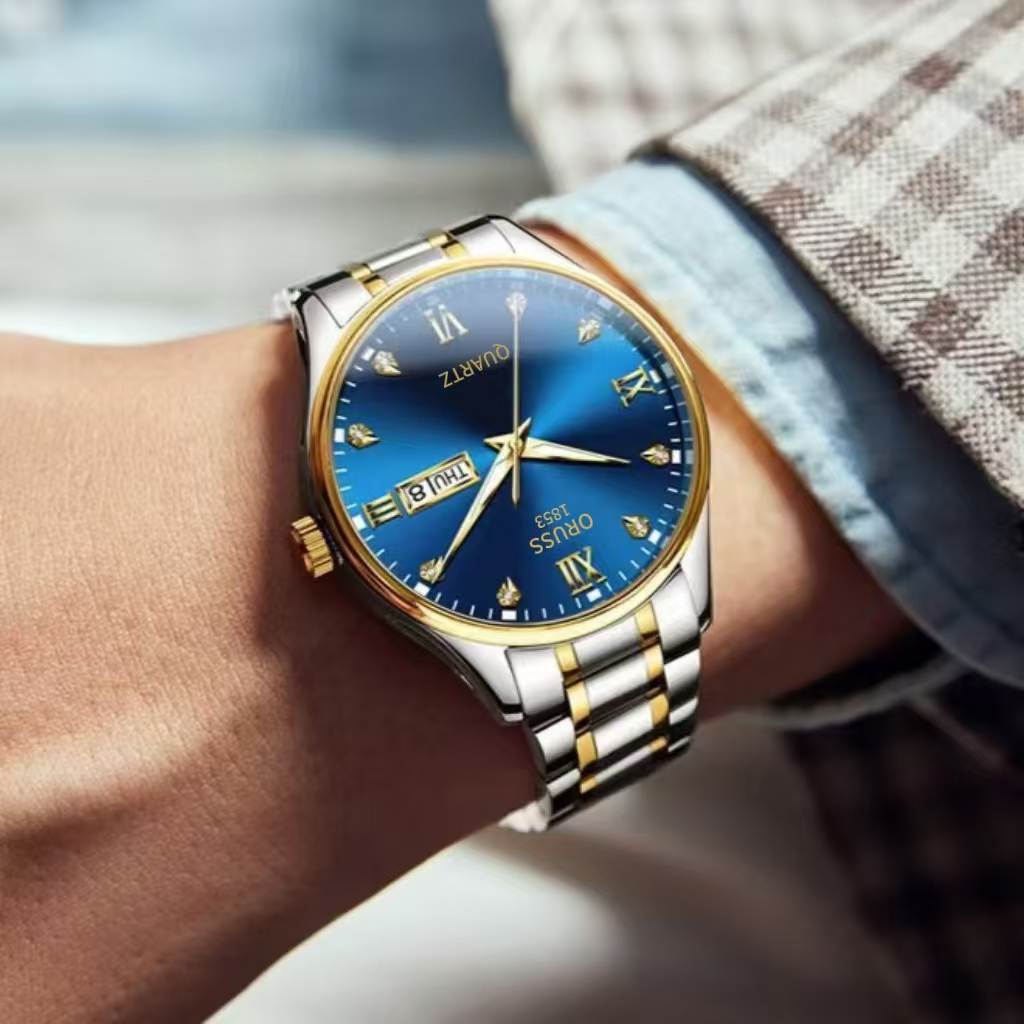 [Gift][With Box]ORUSS Original Men Stainless Steel Luxury Dual Calendar Luminous Waterproof Gold/Silver Watch Analog Business Korean Automatic Fashion Quartz Watch For Men