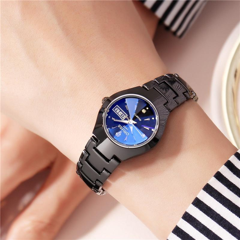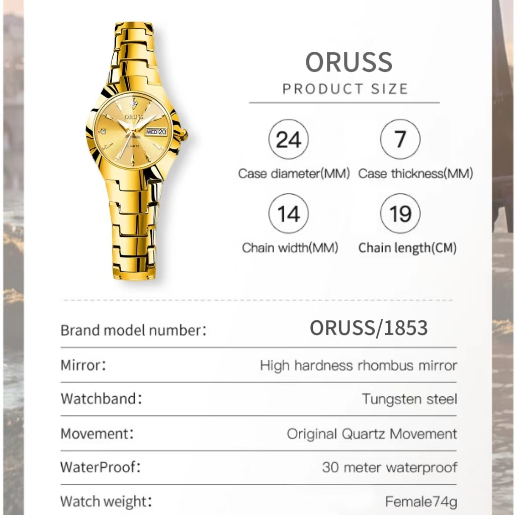 [Gift][With Box]ORUSS Original Women/Men Stainless Steel Luxury Dual Calendar Waterproof Gold Small Watch Analog Fashion Business Korean Automatic Quartz Wrist Minimalist Watch For Women Elegant