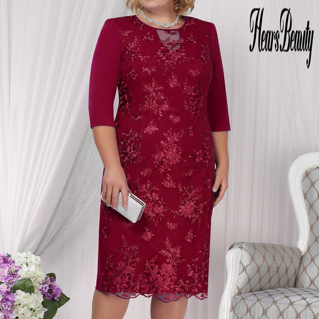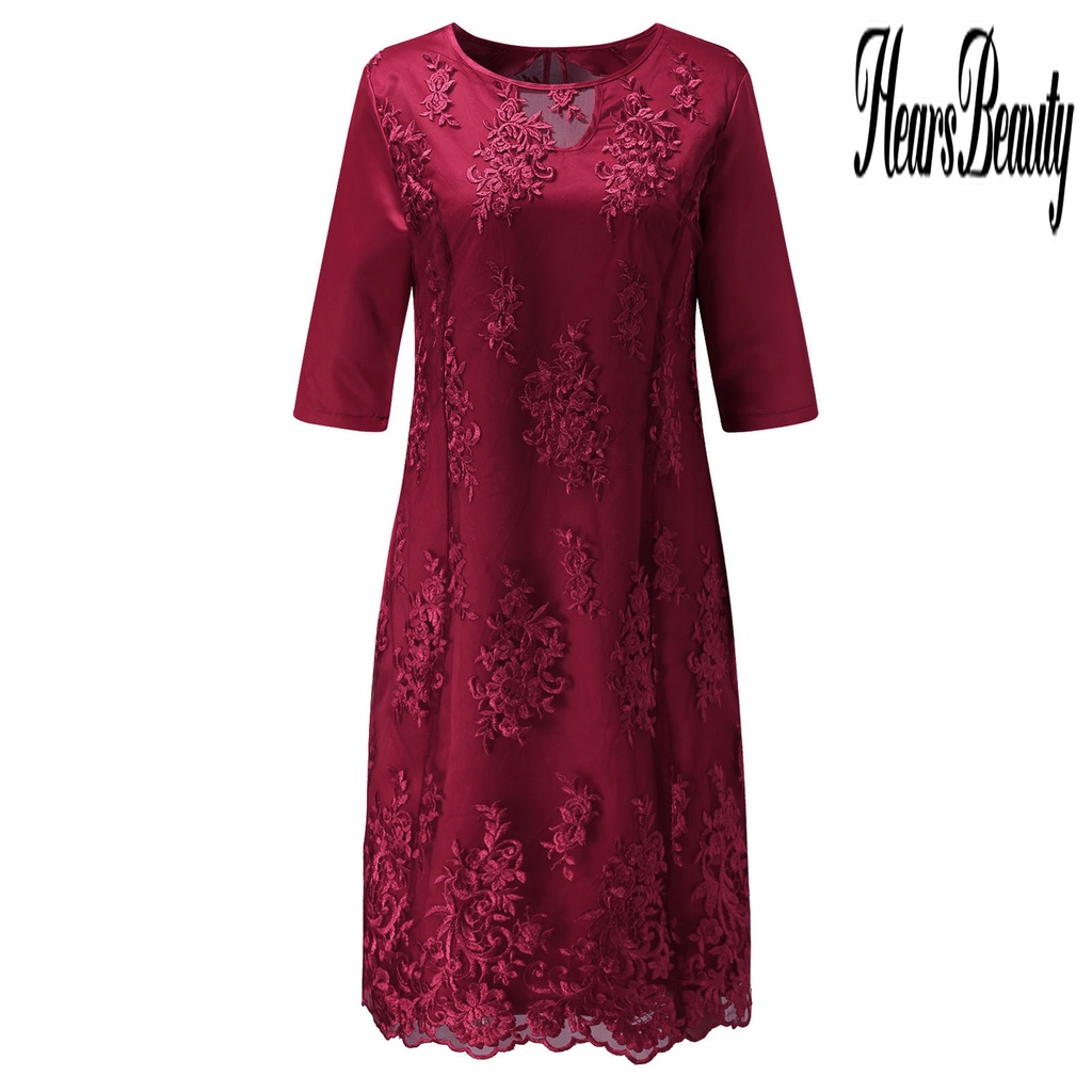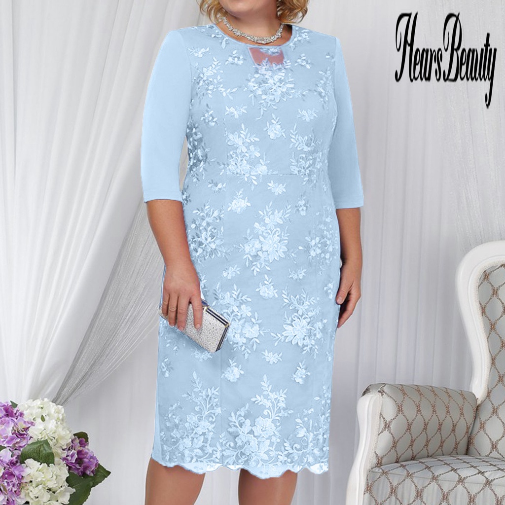[HB] Formal Dress Lace Patchwork Women Crochet Flower Bodycon Dress for Wedding
