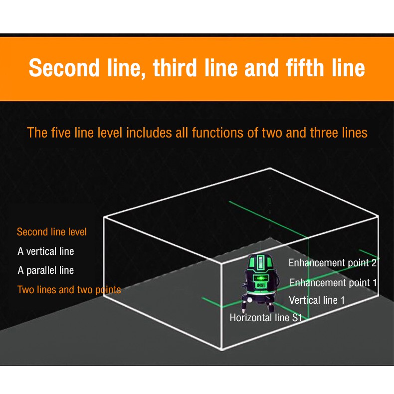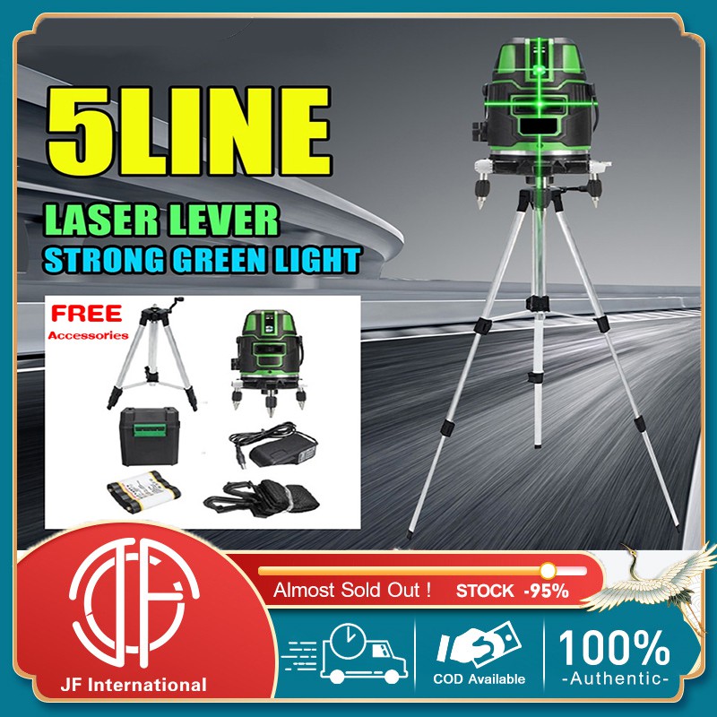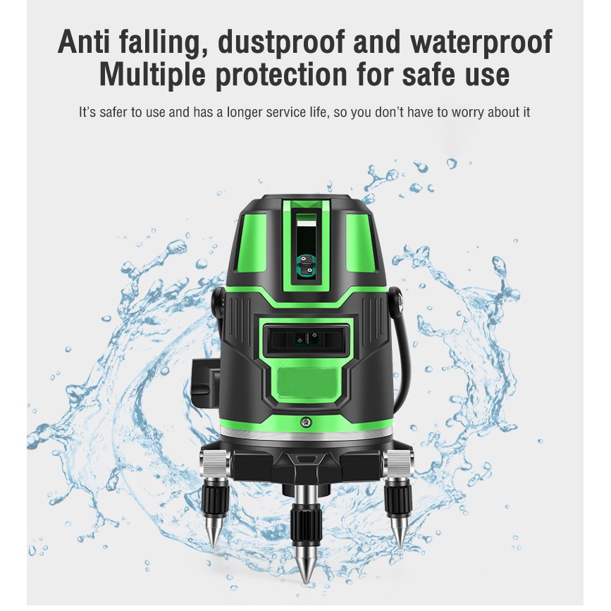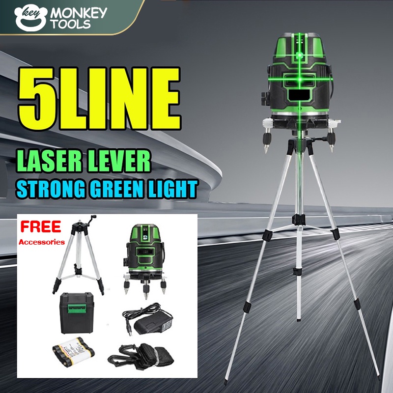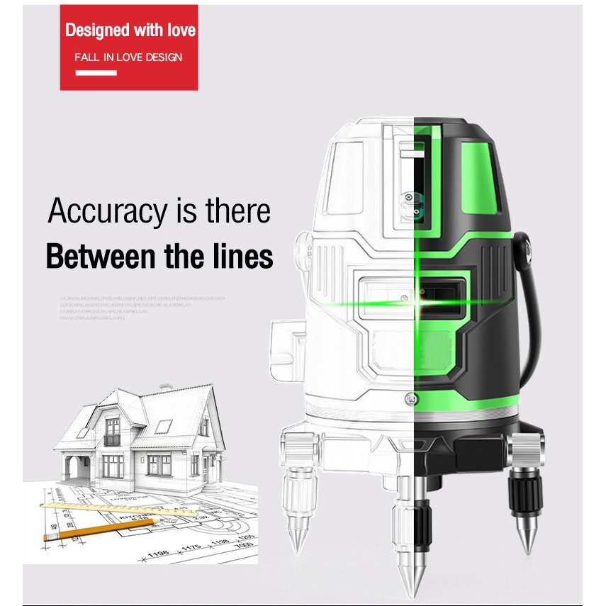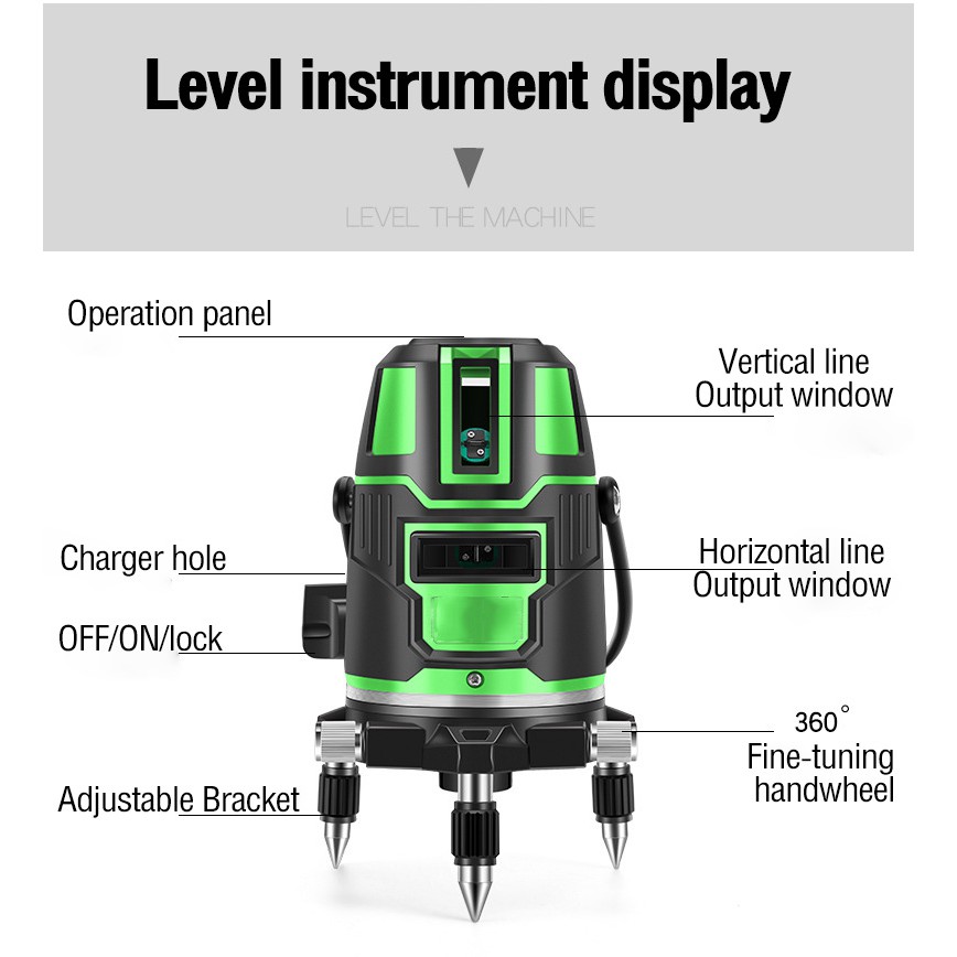 [HIGH PRECISION] 5 Lines Stong Green light Laser Level Meter Self-Level Instrument 360Degree Rotary