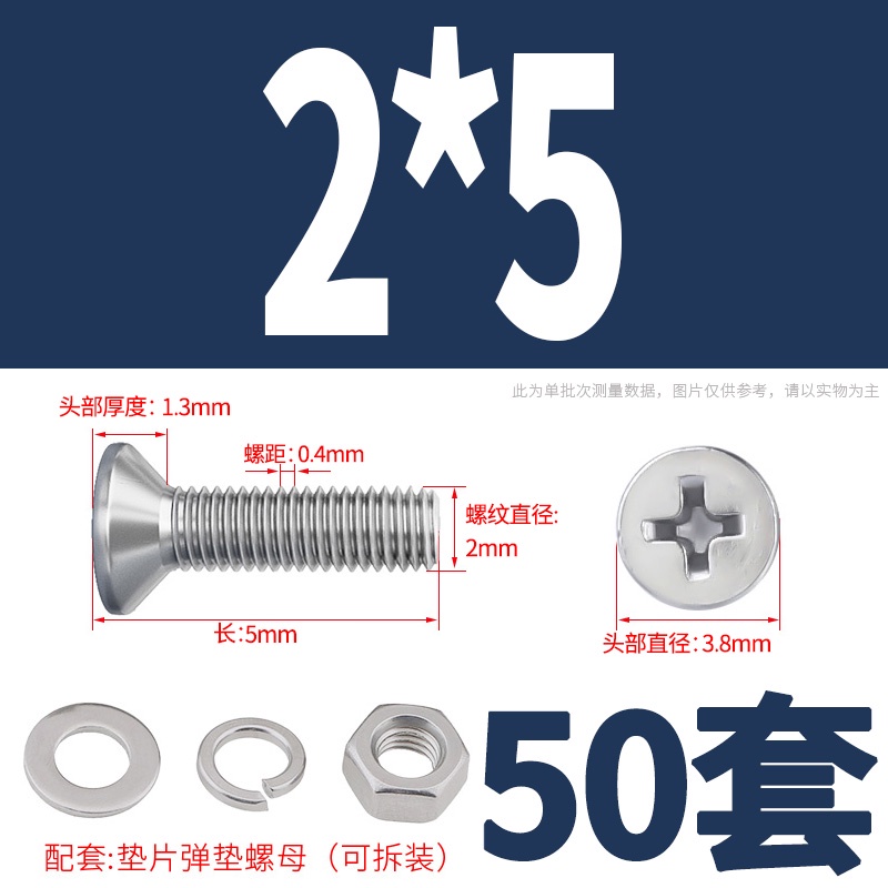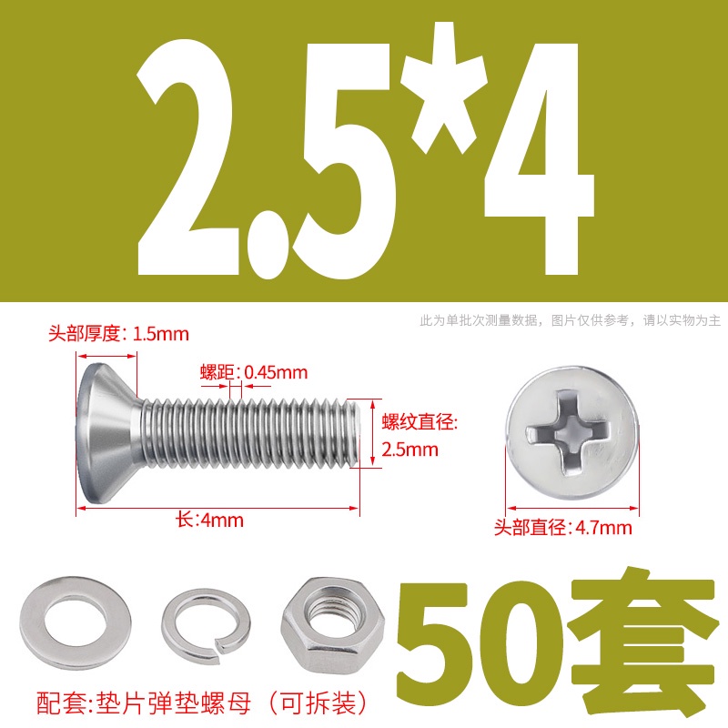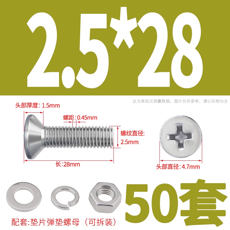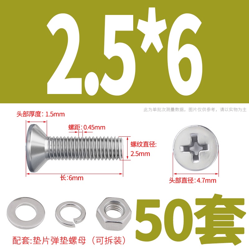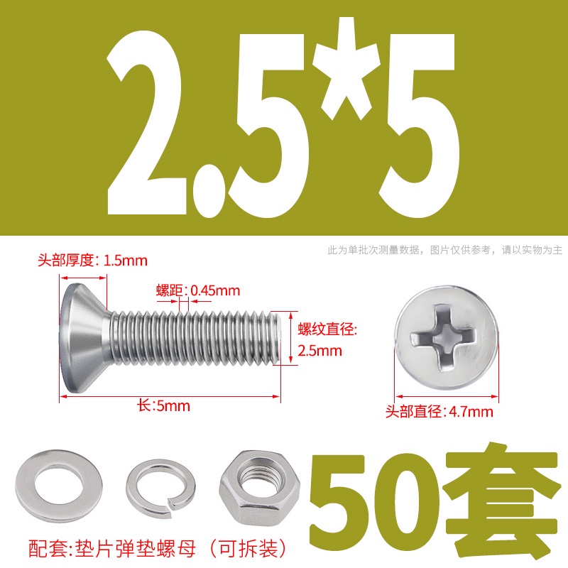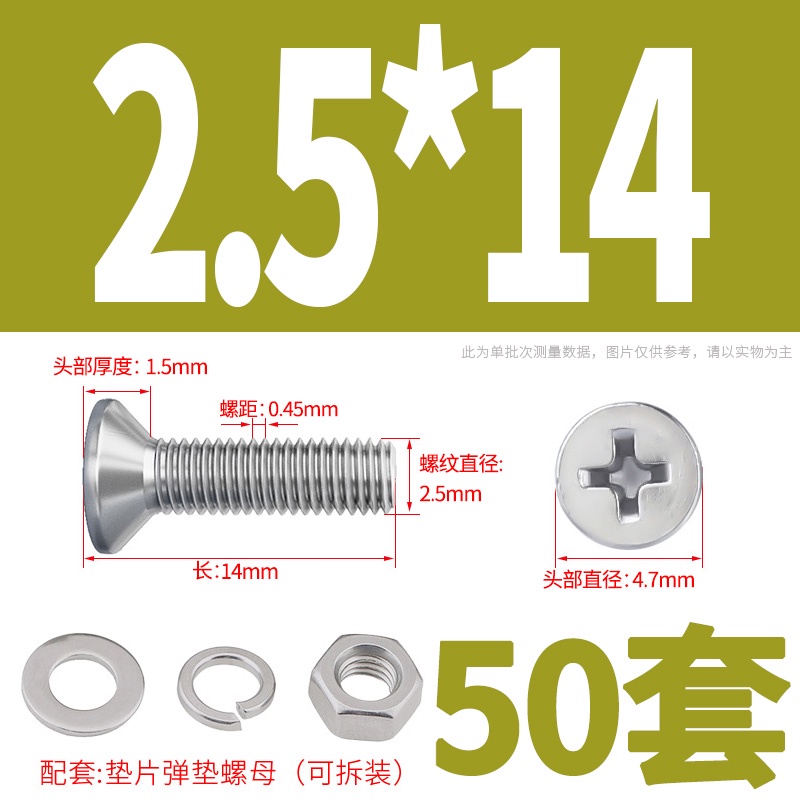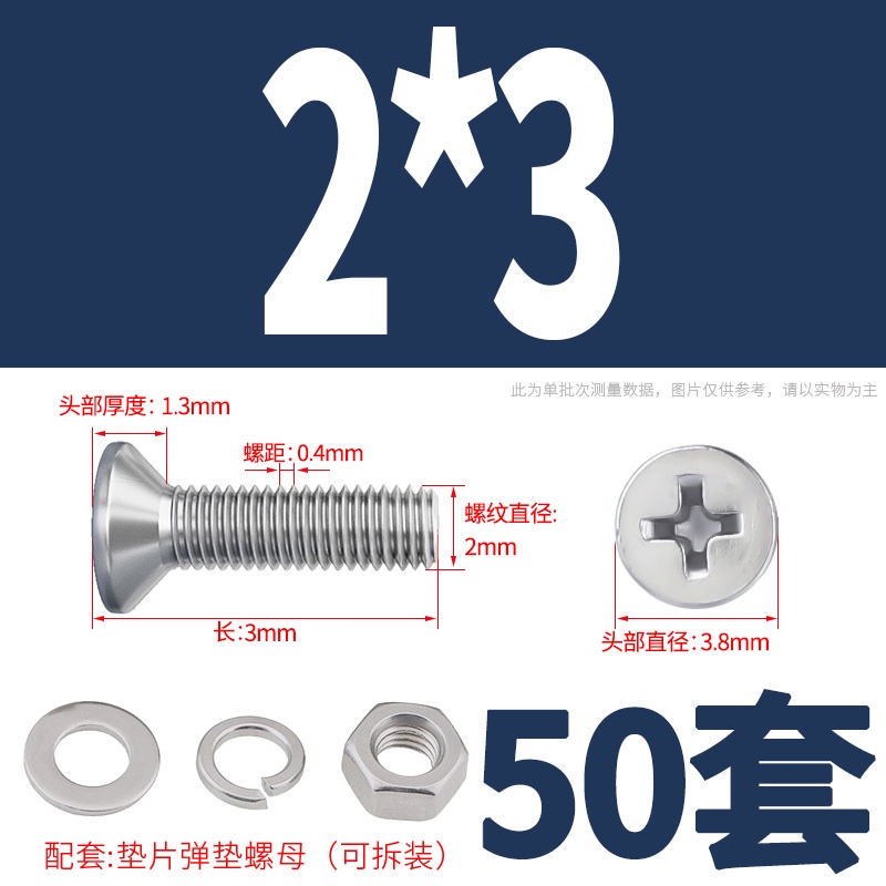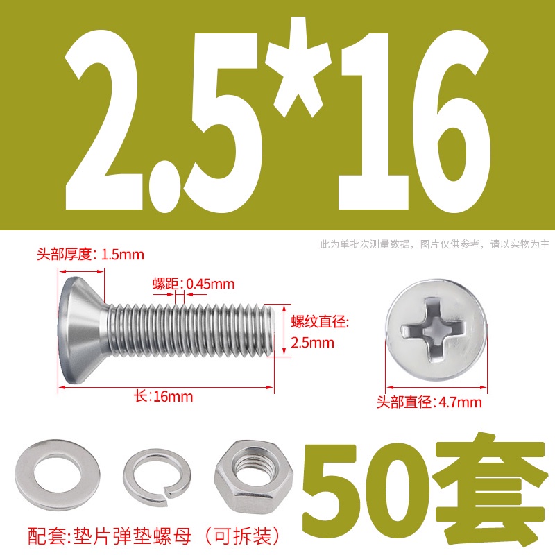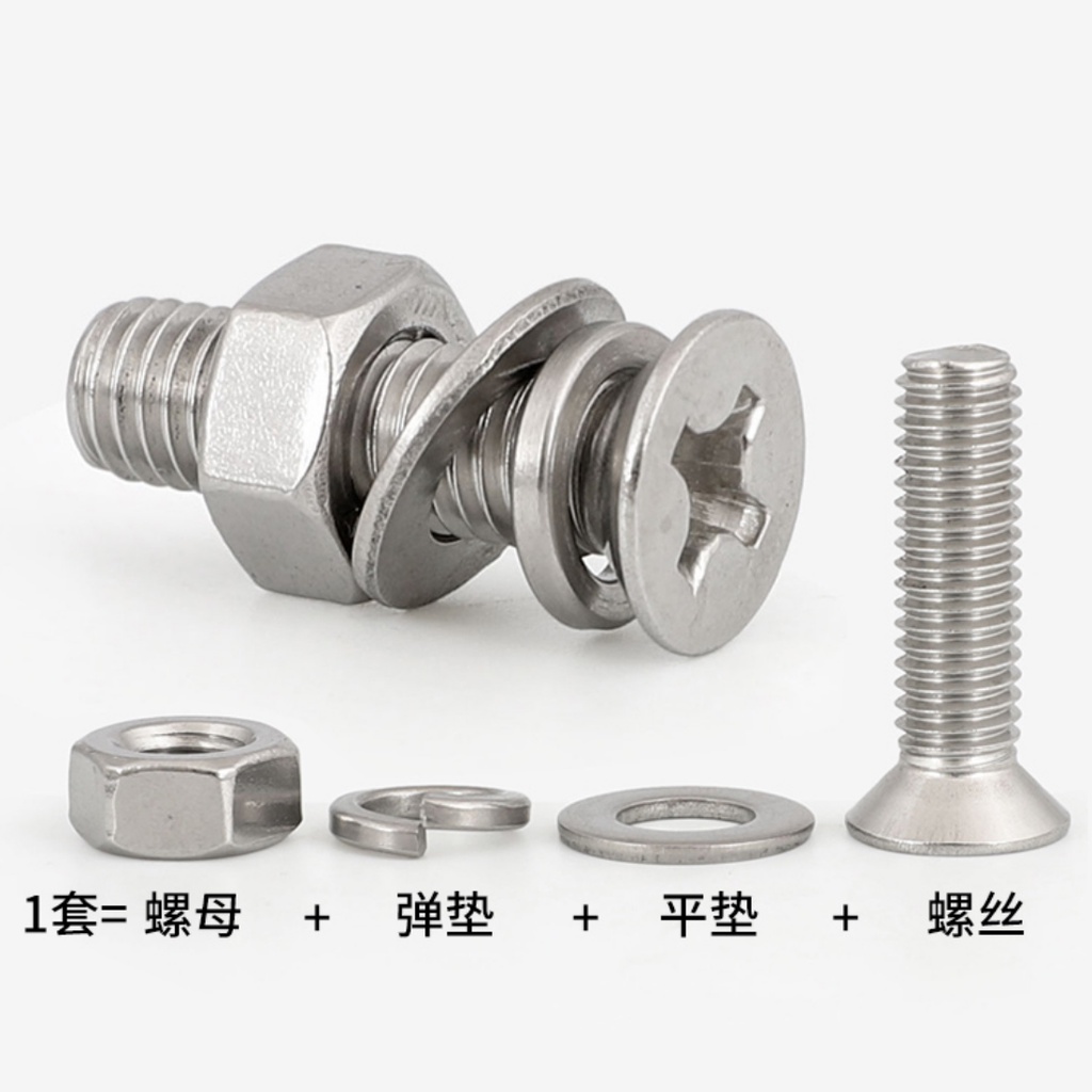 [HNK] 304 Stainless Steel Flat Head Screw Nut Combination Set Phillips Countersunk Head Flat Shock Washer Bolt Daquan M2/M2.5