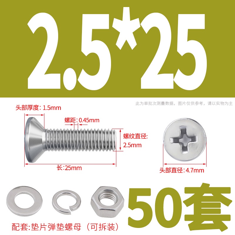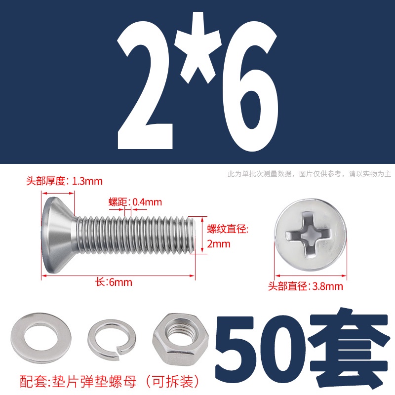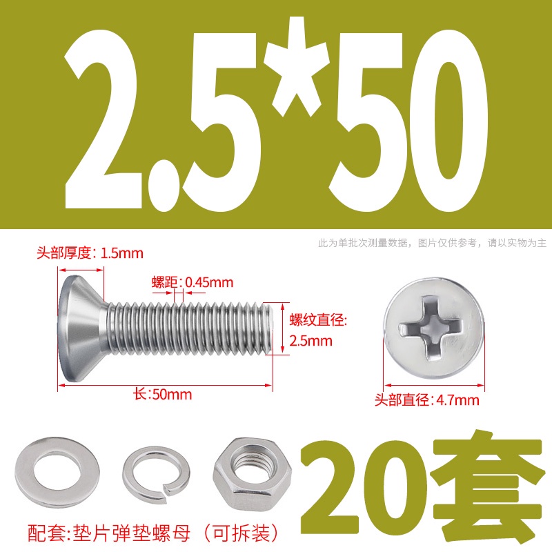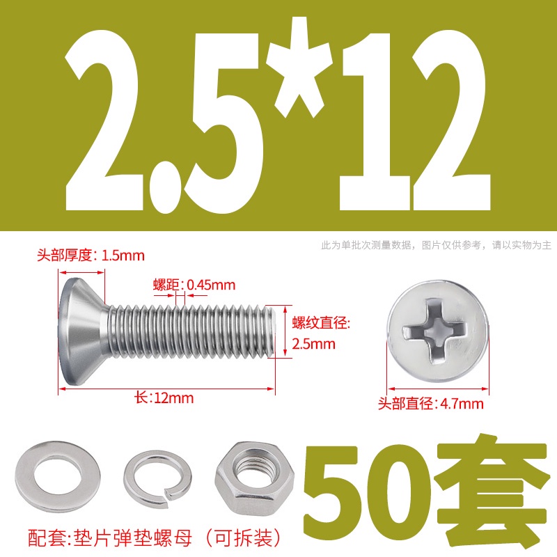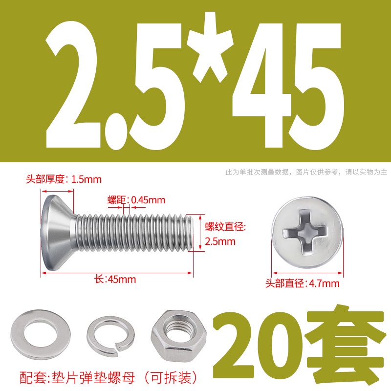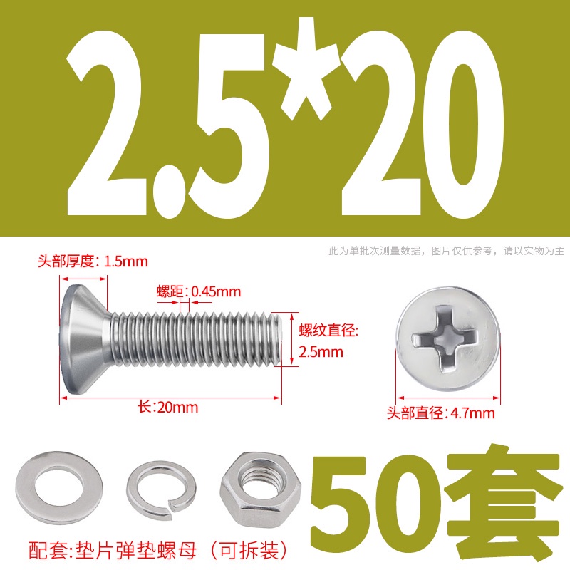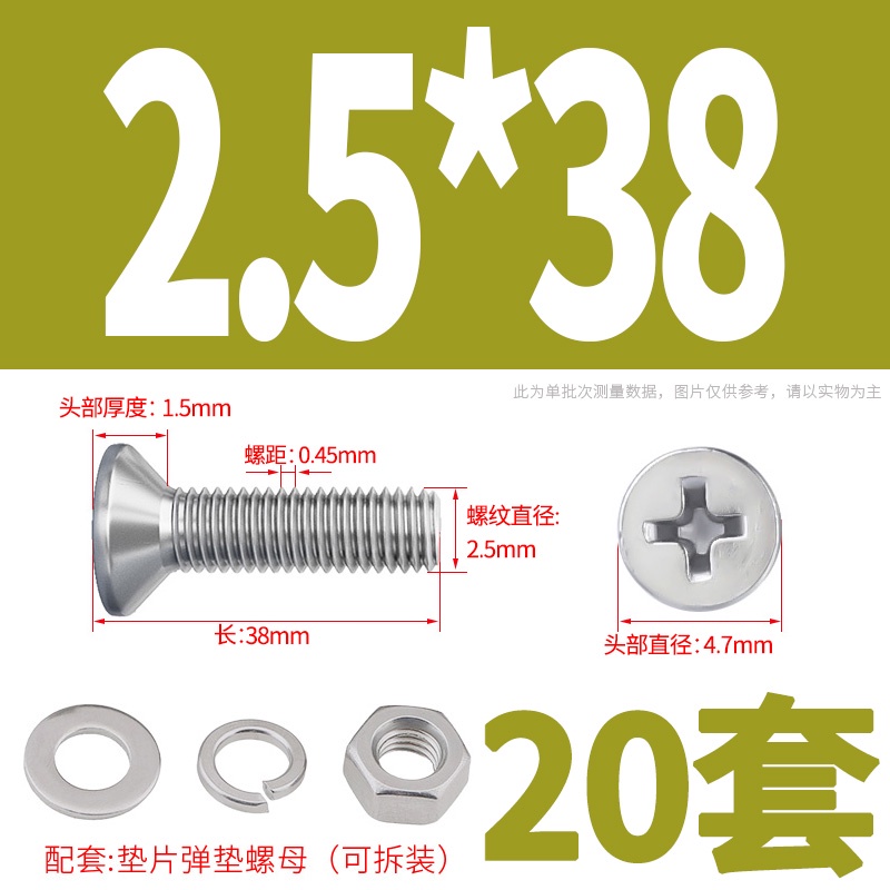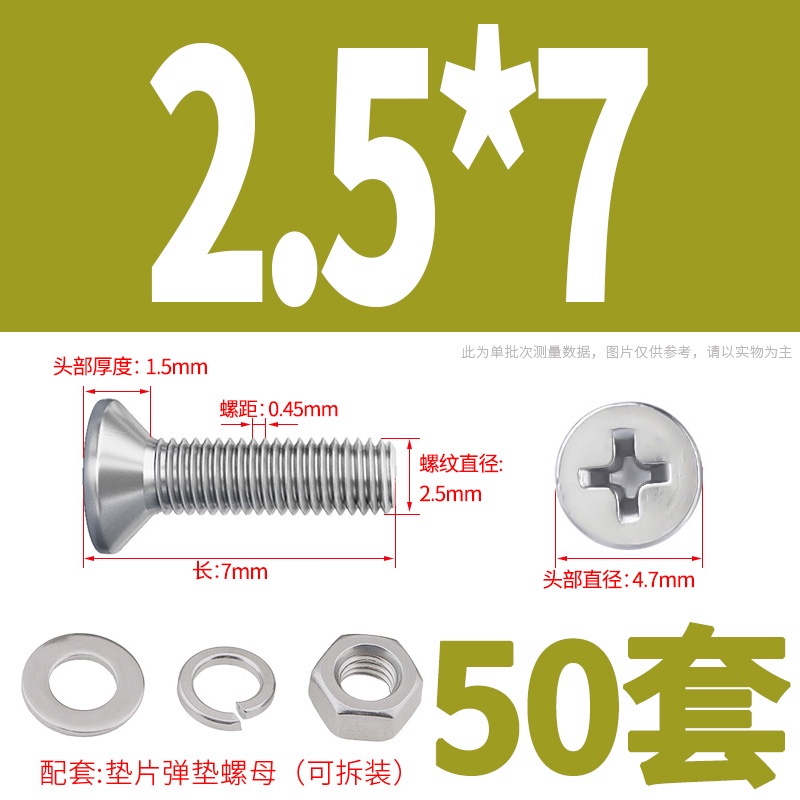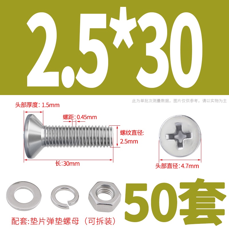 [HNK] 304 Stainless Steel Flat Head Screw Nut Combination Set Phillips Countersunk Head Flat Shock Washer Bolt Daquan M2/M2.5