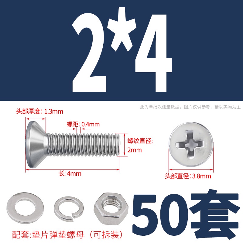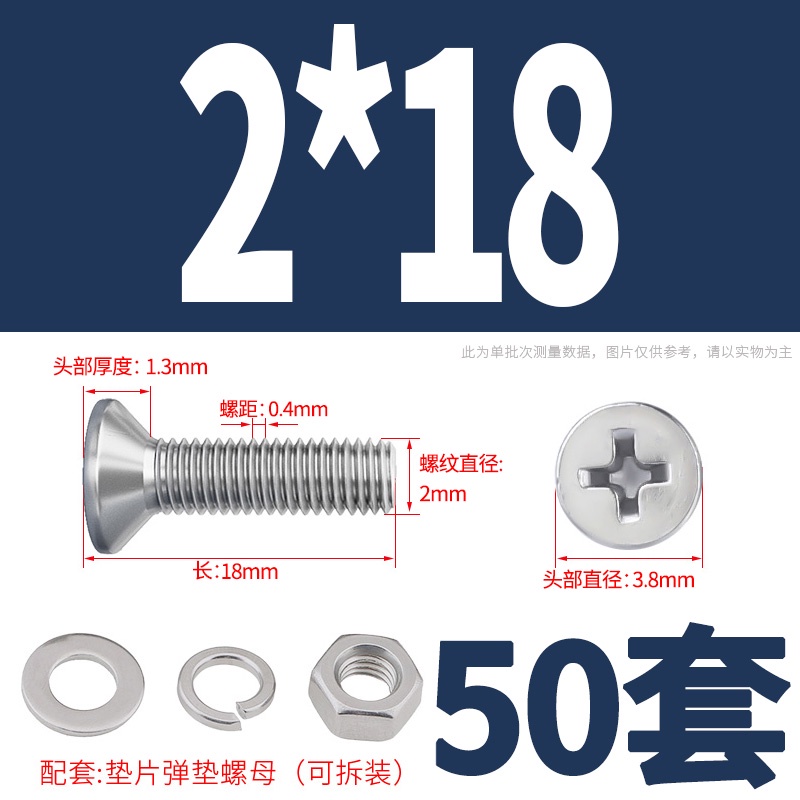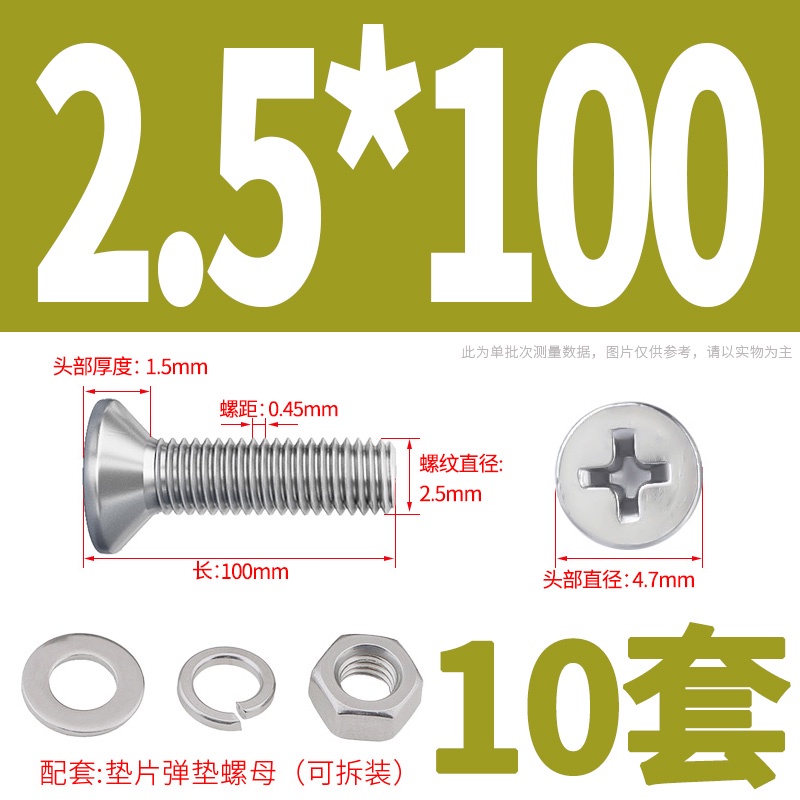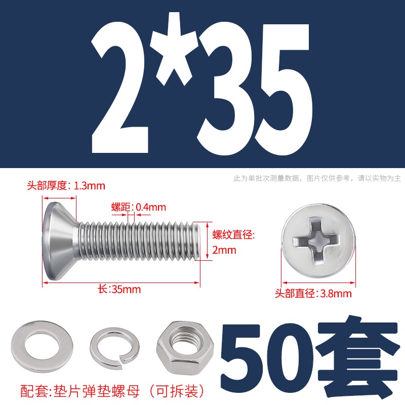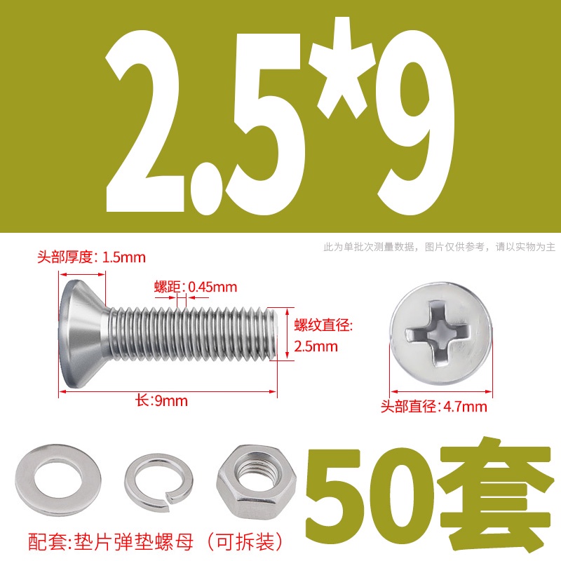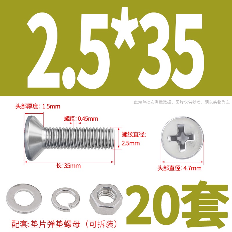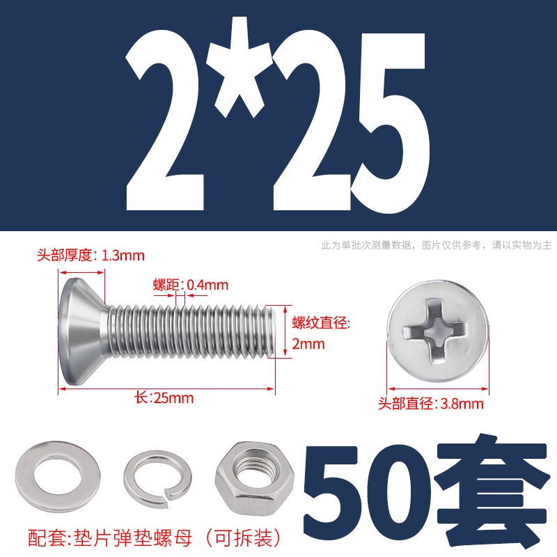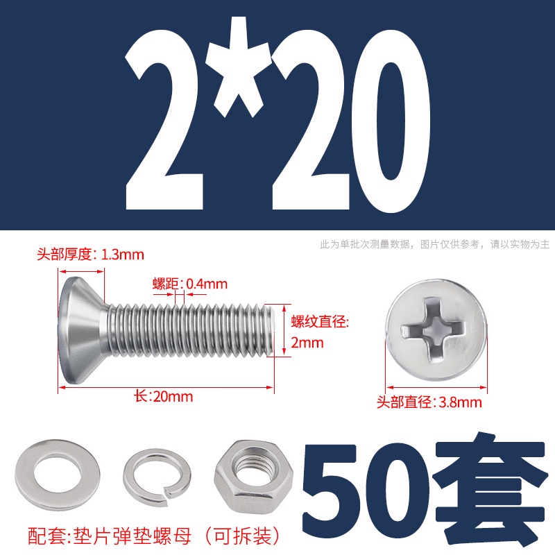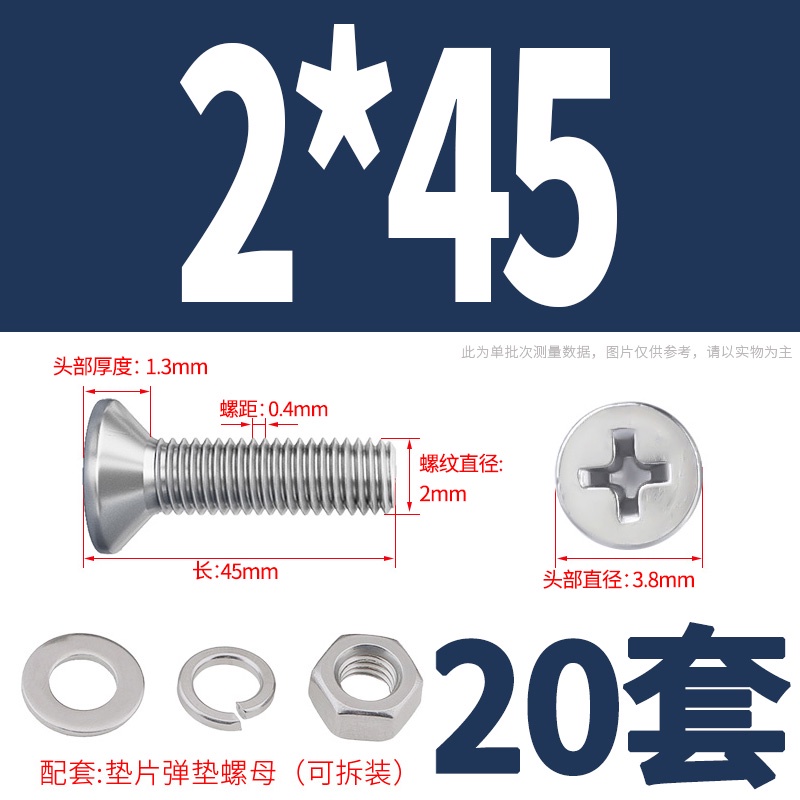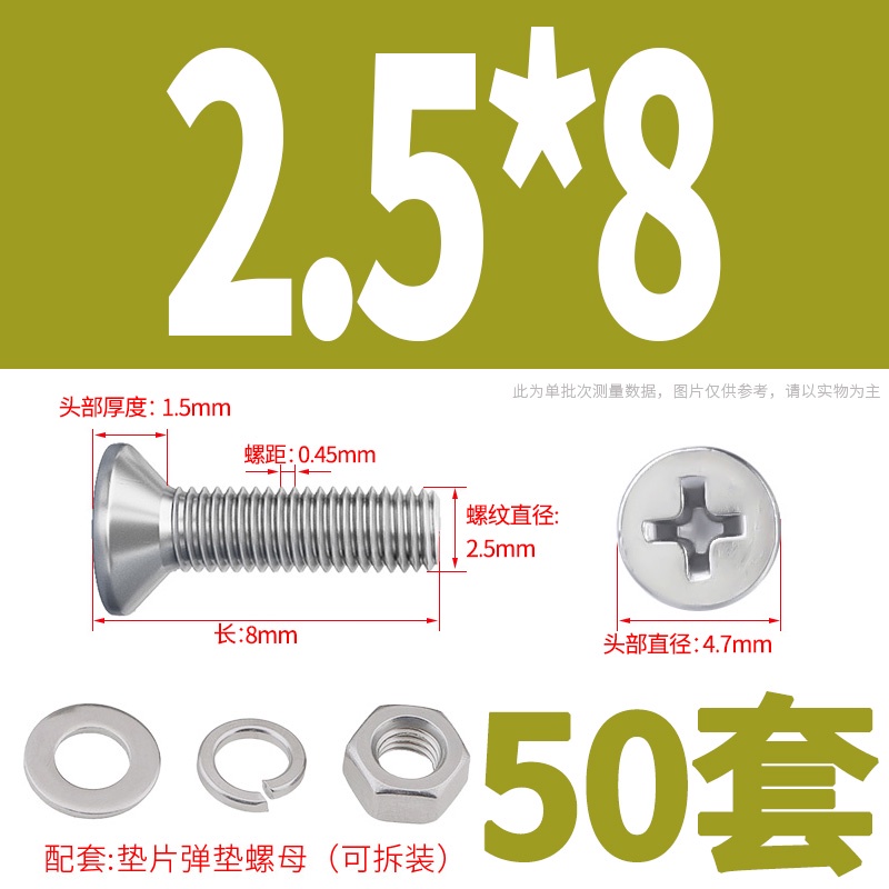 [HNK] 304 Stainless Steel Flat Head Screw Nut Combination Set Phillips Countersunk Head Flat Shock Washer Bolt Daquan M2/M2.5