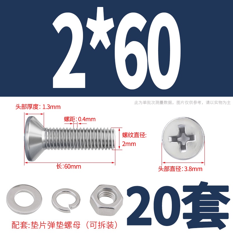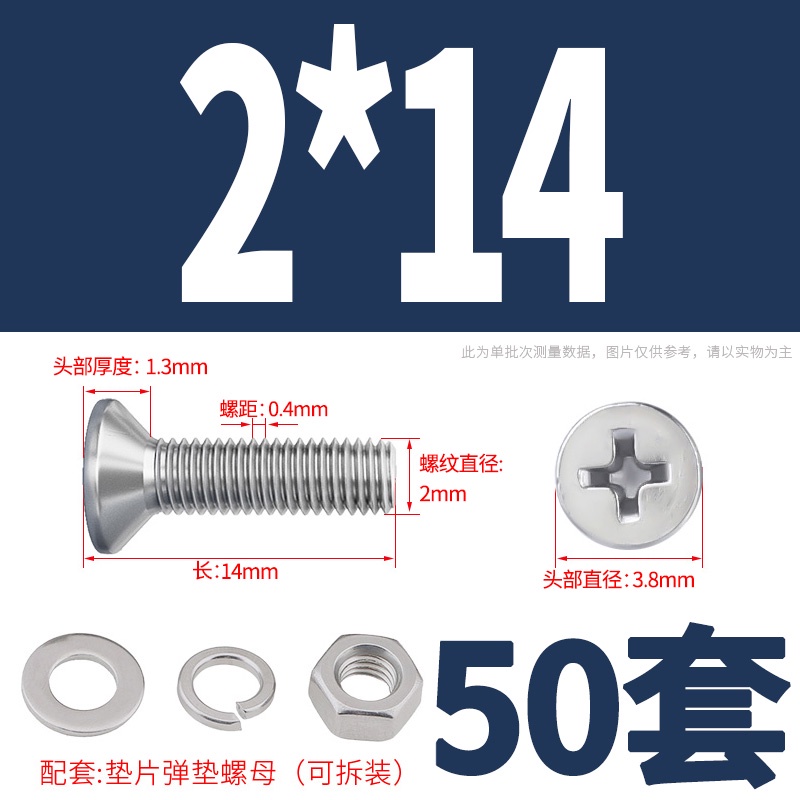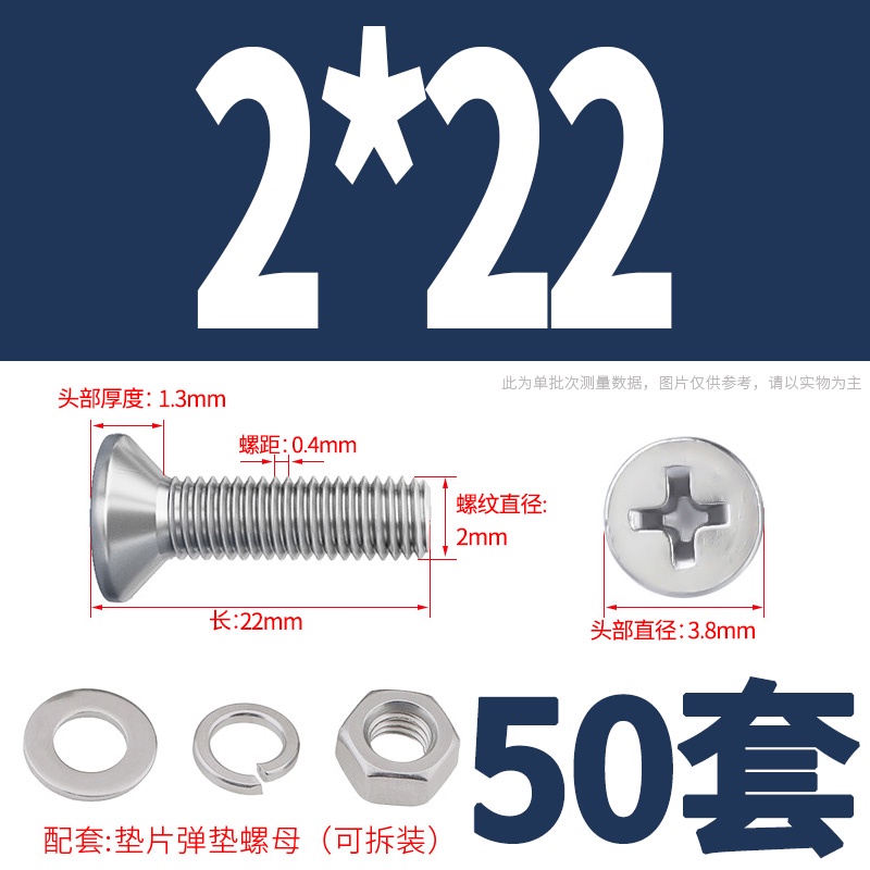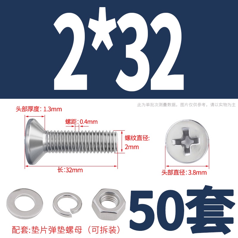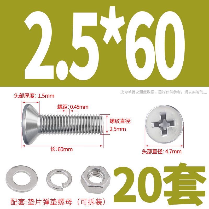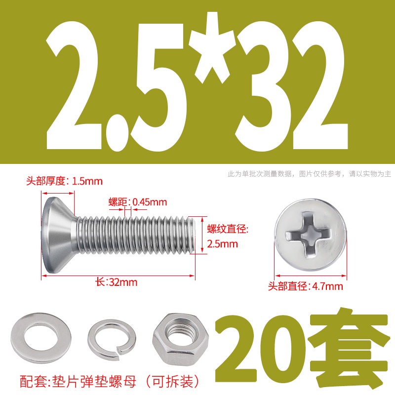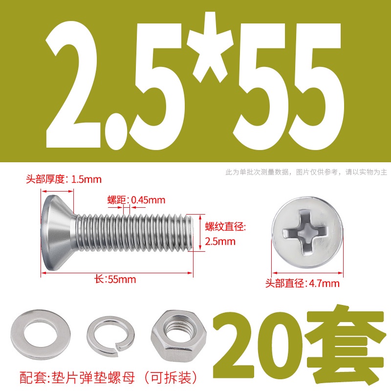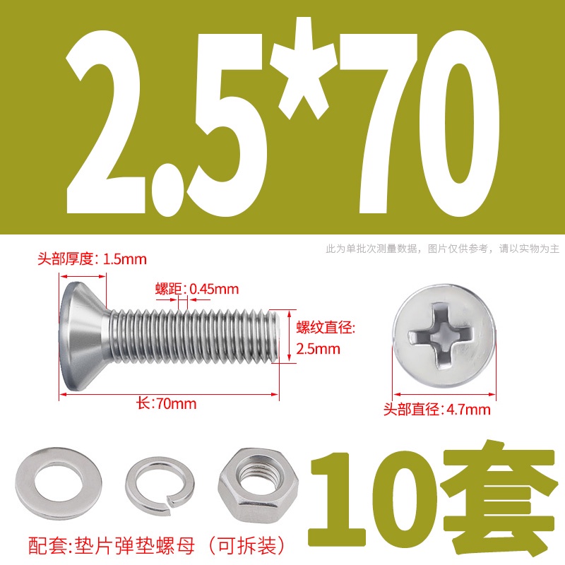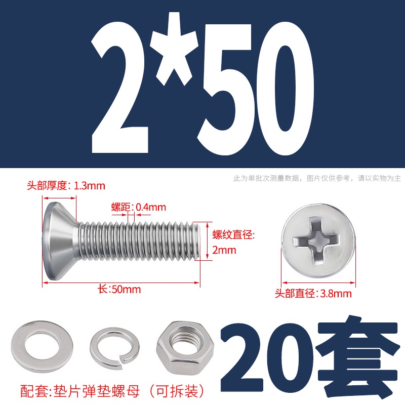 [HNK] 304 Stainless Steel Flat Head Screw Nut Combination Set Phillips Countersunk Head Flat Shock Washer Bolt Daquan M2/M2.5