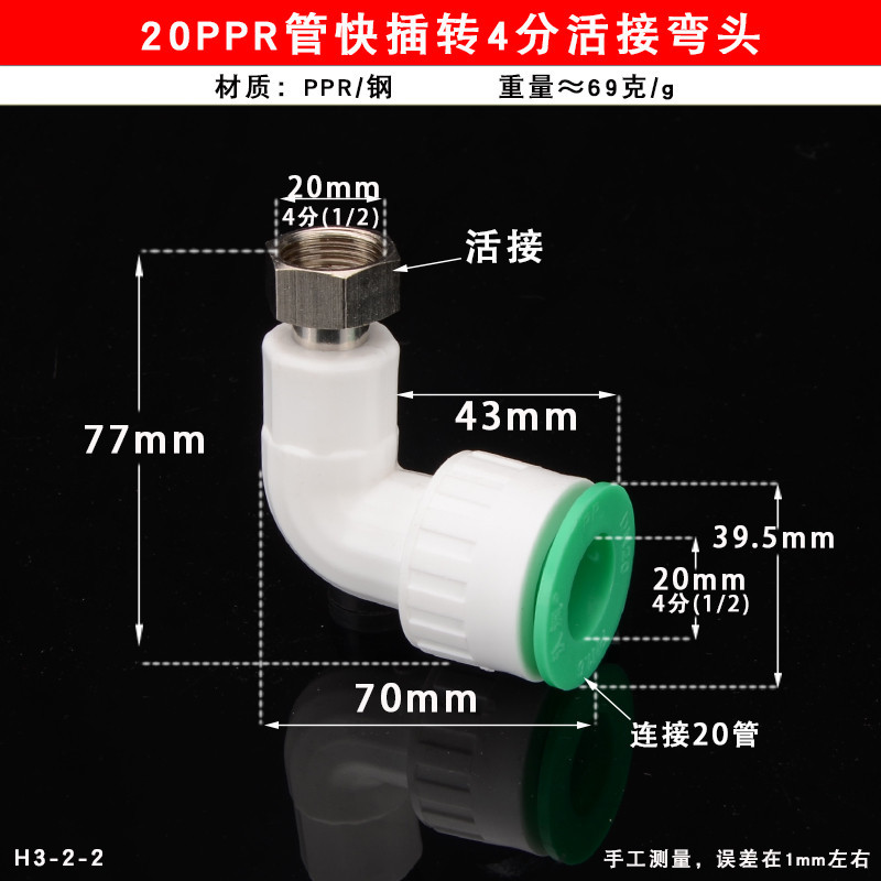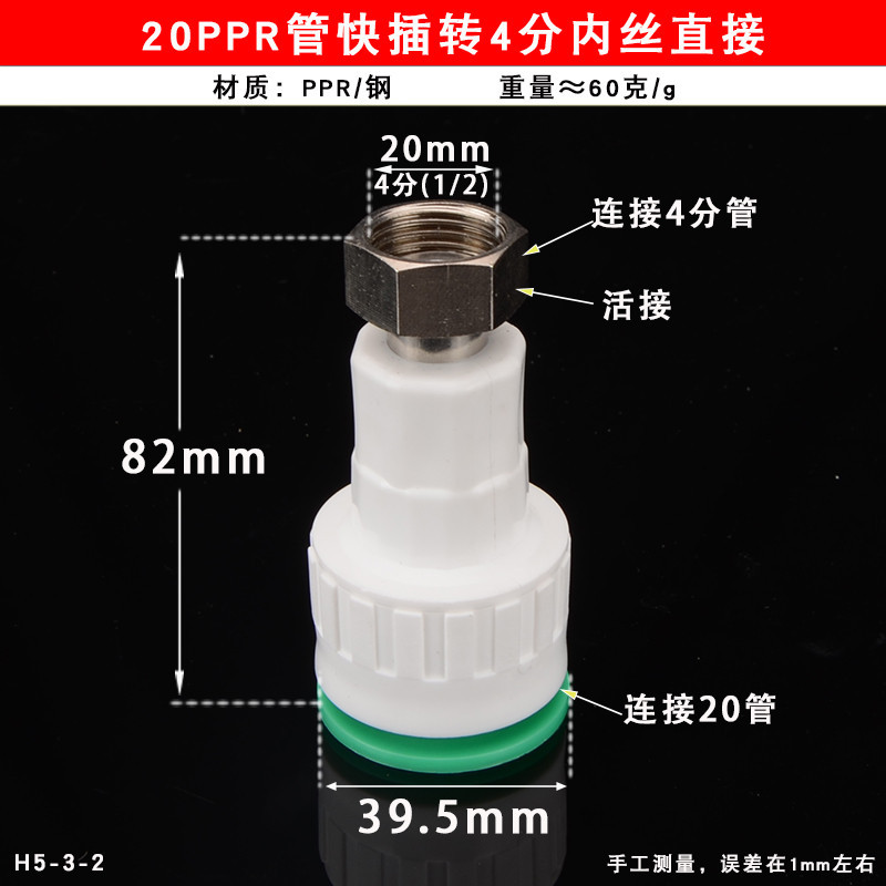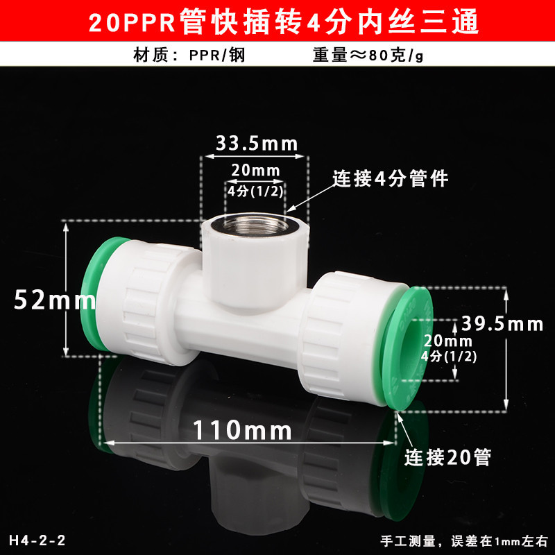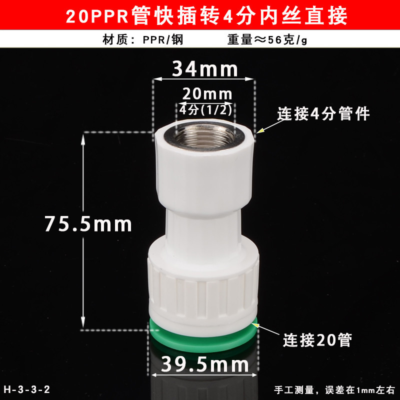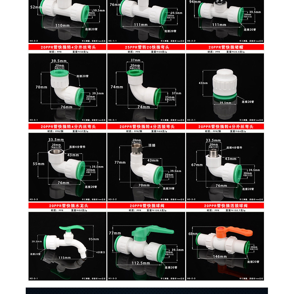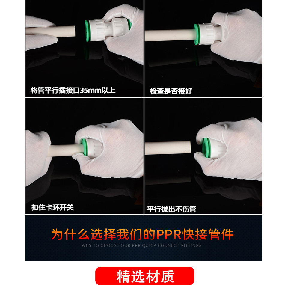 [HNK] Hot Melt-Free PPR Water Pipe Quick Connector In-Line Type Quick Connector Valve Faucet Hot and Cold Pipe Fittings Daquan 4 Points 6 Points 3cm