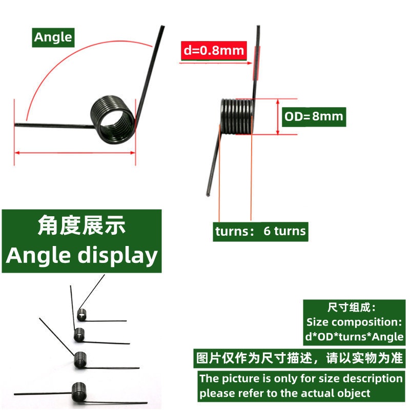 [HYH] Spring Steel Wire Diameter 0.8mm V-Shaped Spiral Torque Spring Hair Clip Spring Steel Torque Torque Torque Spring OD4-10mm Angle 60 90 120 180 Degrees