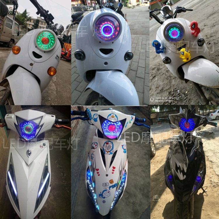 [Highlight] Angel Devil Eye Peeping Headlights Motorcycle Scooter Locomotive Electric Vehicle Modified Flashing Laser Cannon Built-In