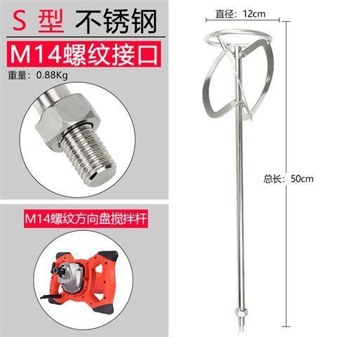 [Hot] 304 stainless steel mixing rod cement ash mixing ash putty powder paint paint M14 spiral S-shaped steering wheel