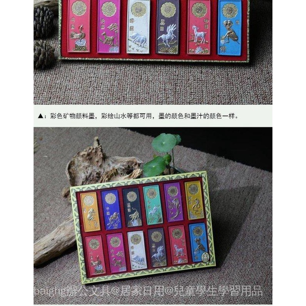 #Ink Stick Specialty Store#Calligraphy Ink Strips Handmade Color 12 Taels Ingot Pigment Cinnabar Laohu Kaiwen Oil Painting Blocks Four Treasures Of The Study Paper Pen