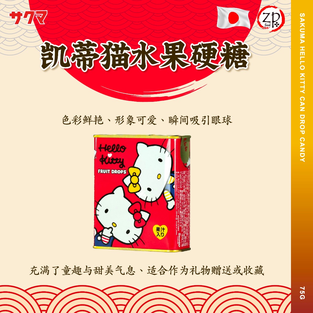[JAPAN JAPAN] Sakuma Candy Drop (Hello Kitty) SAKUMA Hello Kitty Fruit Candy Tin Box 75G