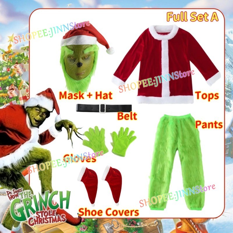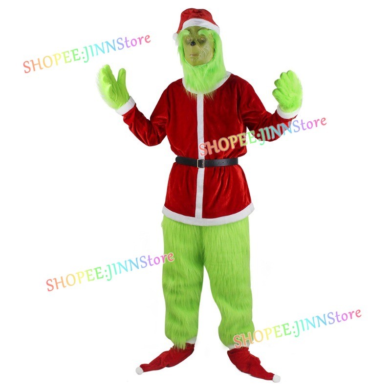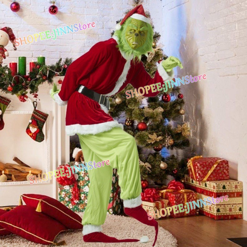 - JINN - Grinch Stole Christ Cosplay Costume Christmas Green Monster Grinch Cosplay Outfit Latex Mask Set Party Costumes