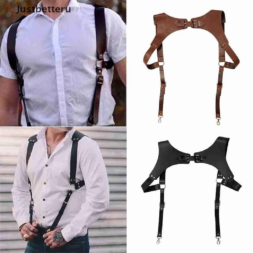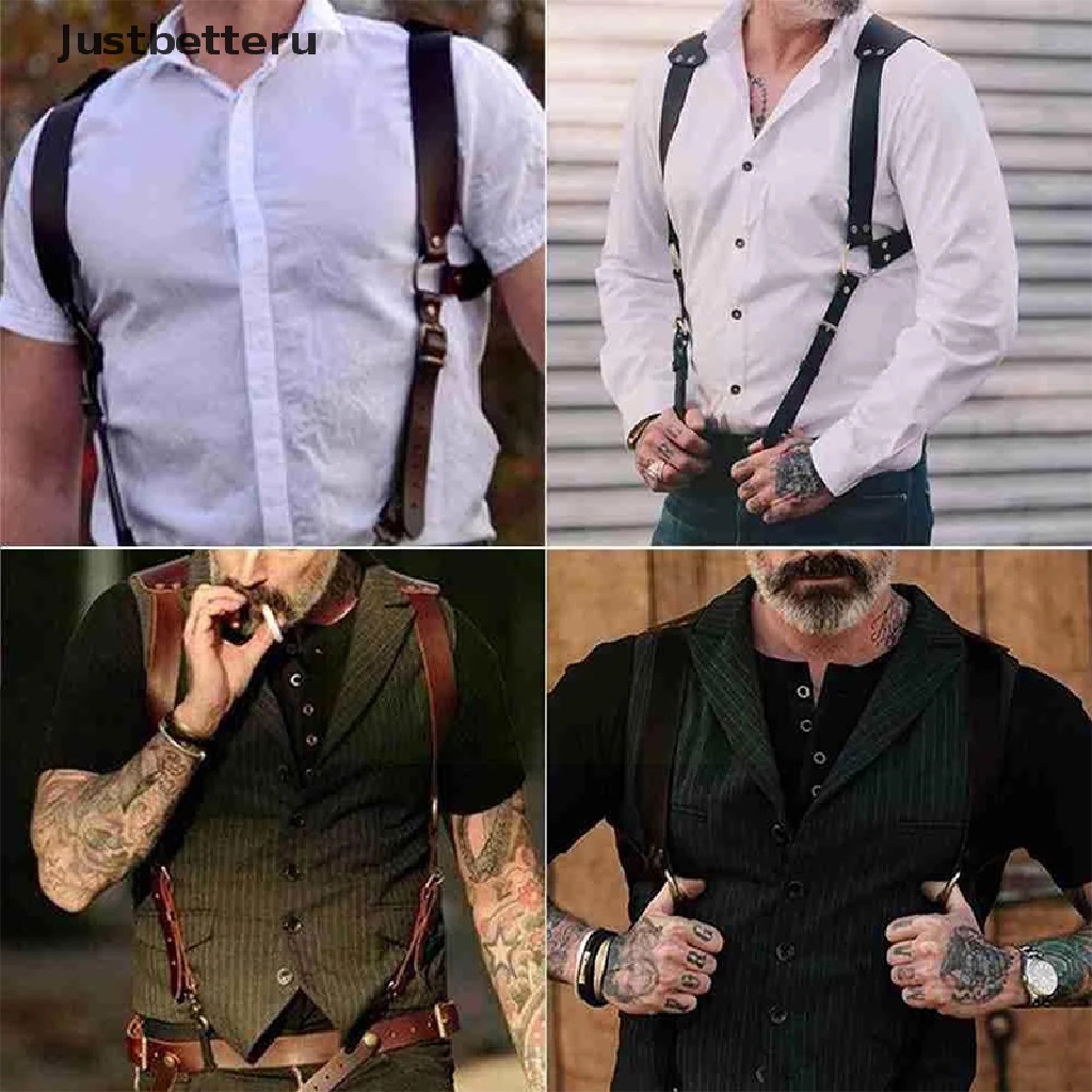 [Justbetteru] Vintage Suspenders Men Leather Back Trouser Braces Fashion Men Strap Belt Wedding Party Suit Shirt Accessories