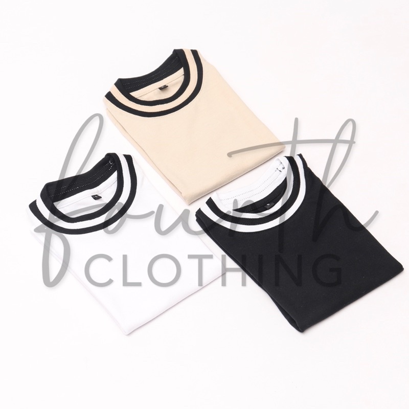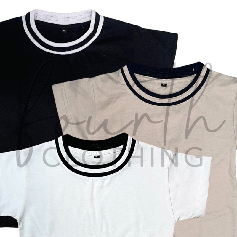 [KIDS] Pro Club Inspired Two Tone Striped Collar Crew Neck Tees T-shirt Shirt for Kids (CVC Cotton)