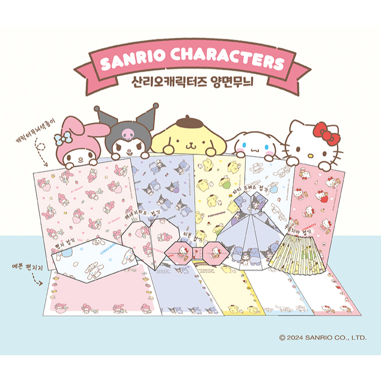 [Korea] Sanrio Characters 20P Double-Sided Paper Letter Paper Origami 10 designs x 2 each Hello Kitty, Kuromi, My Melody, Cinnamoroll, Pompompurin Collectibles Paper folding