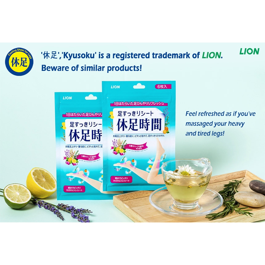 [LION] Kyusoku Jikan Cooling Sheet For Legs (6 Sheets) / Made in Japan / Foot Cooling Pads / Leg Fatigue Relief / Tired Leg Patches / [Shipping from Korea]