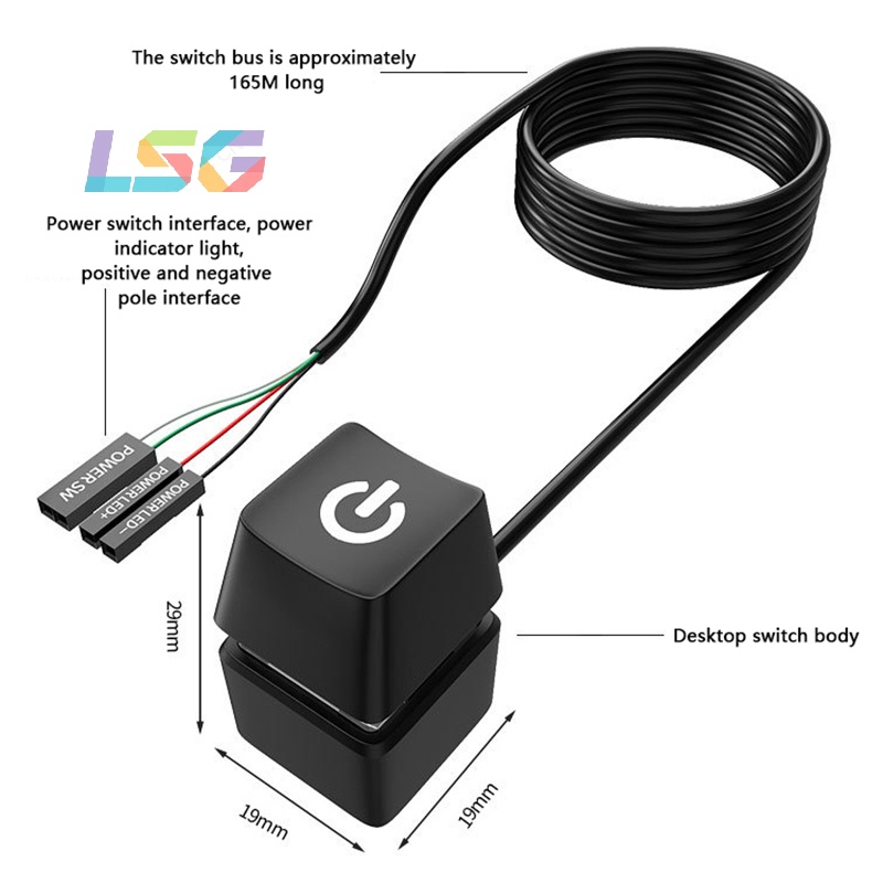 [LSG] Portable Colorful LED Light Computer Desktop Power Switch PC Motherboard External Start Power On/Off Button Extension Cable new