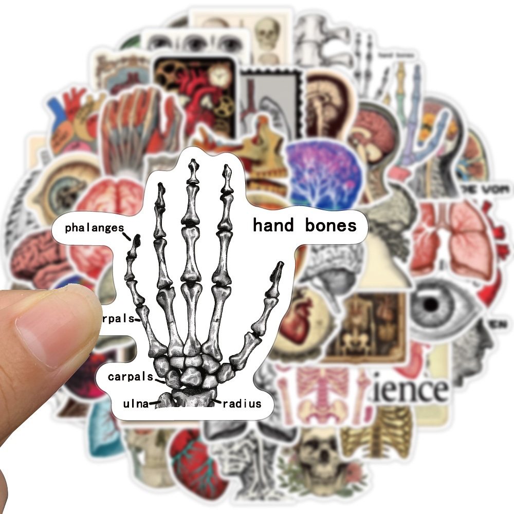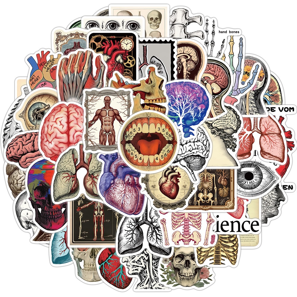 [Large Sticker]50pcs Cartoon Human Organ Medical Anatomy Stickers Retro Scientific Anatomy Decals Kids Toy for Laptop Skateboard Phone Scrapbooking Supplies Cool Waterproof Sticker