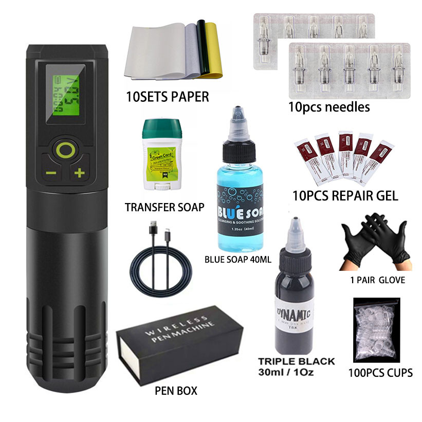 [Local Delivery] Wireless Tattoo Machine LCD Display Portable Rechargeable Metal Tattoo Pen Complete Tattoo Set Wireless Pen Tattoo Machine