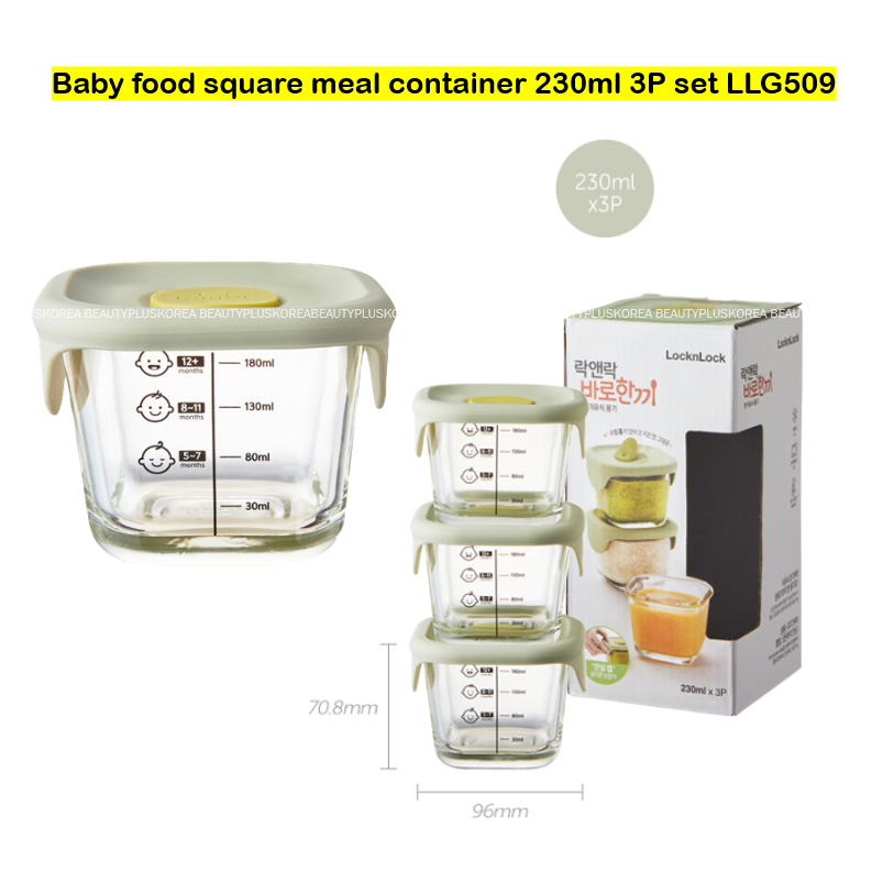 [Lock&Lock] Baby Food Storage Container Glass 230ml 3P Set locknlock Silicon Cap Baby Food Container (LLG508 LLG509)