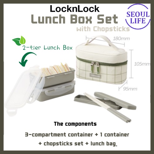 [LocknLock] Lock and Lock Korea New 2 3 Tier Layer Lunch Box LunchBox / Modern Check 2,3-tier Lunch Box Set + Chopsticks
