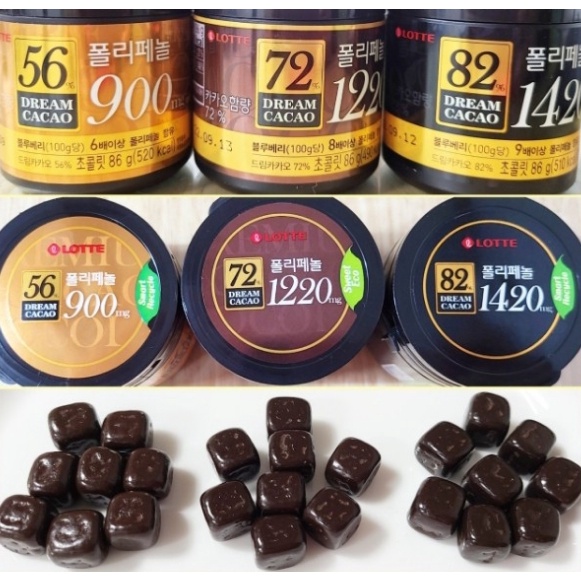 [Lotte] Dream Cacao 56%, 72%, 82% Polyphenol Dark Chocolate / Made in Korea / One bite size / Chocolate Ball