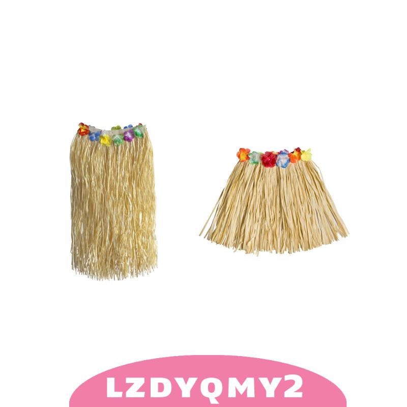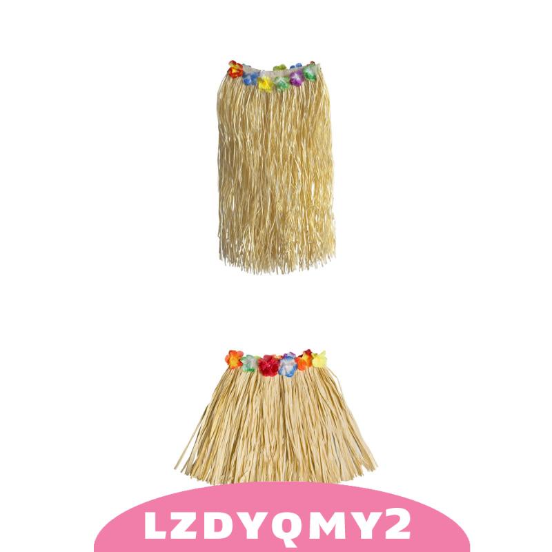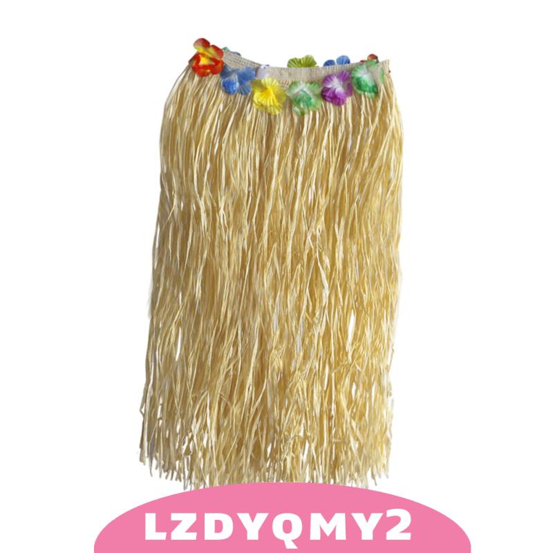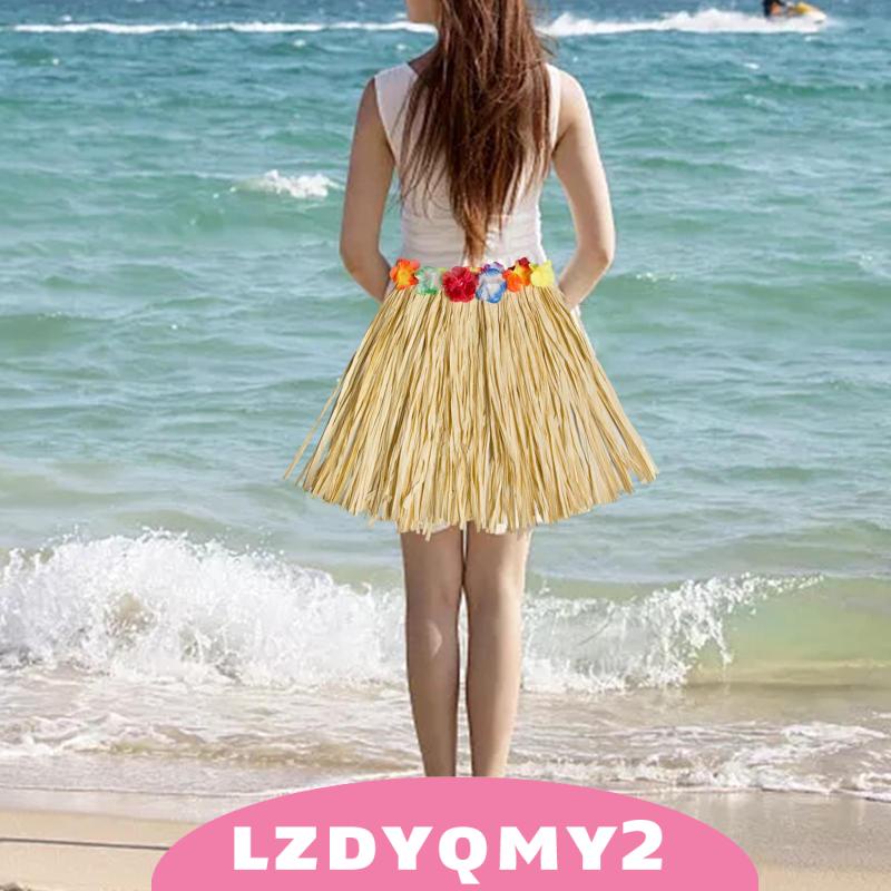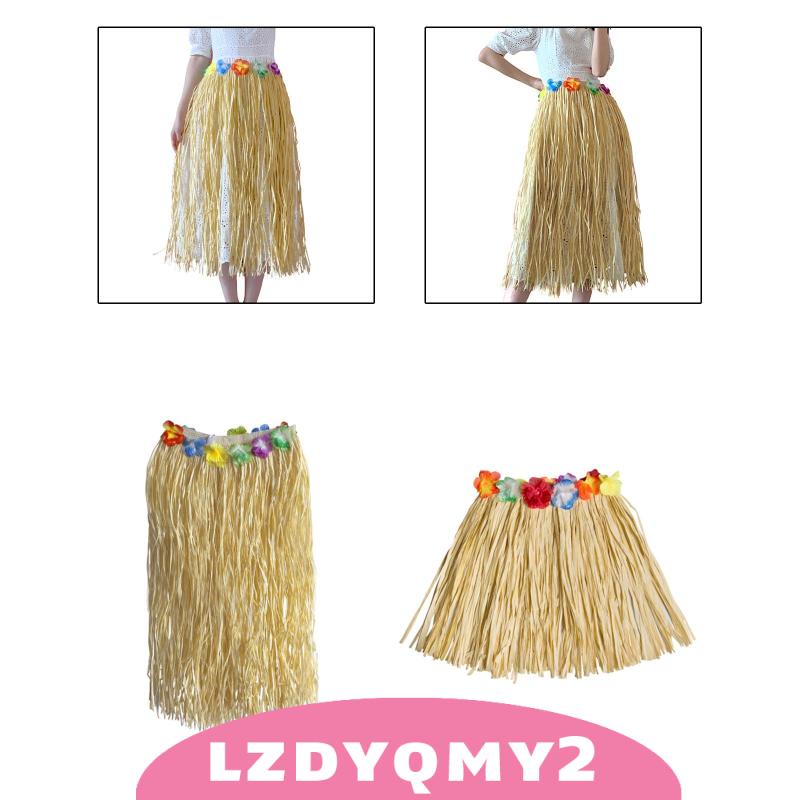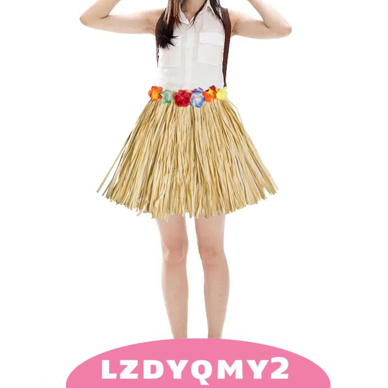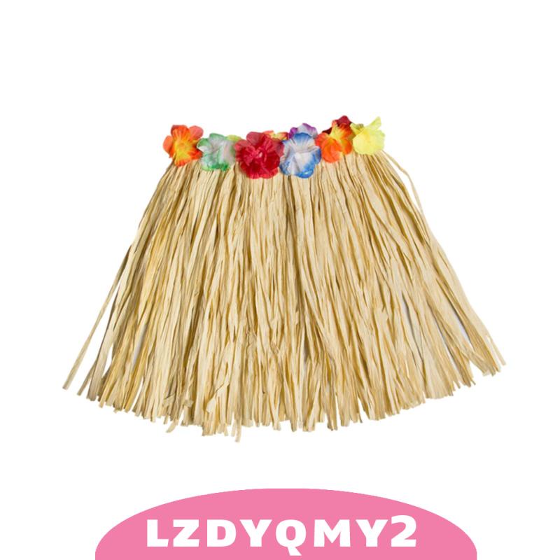 [Lzdyqmy2] Hawaiian Grass Skirt, Women Raffia Skirt Costume with Flowers Grass Skirts