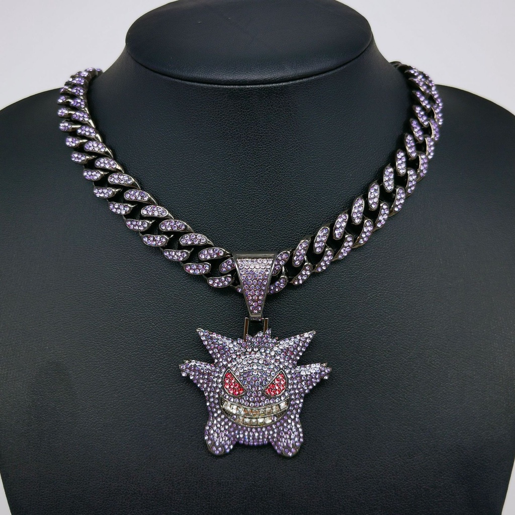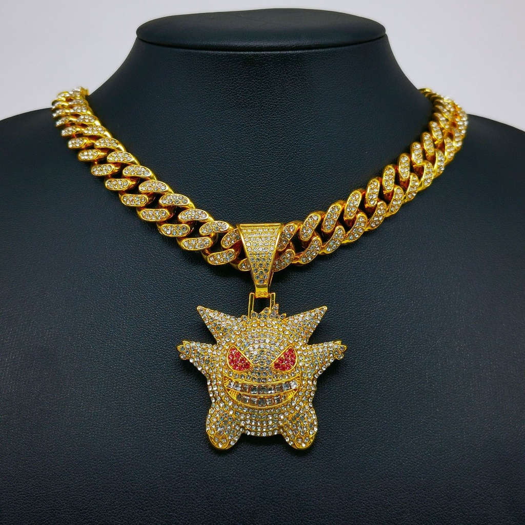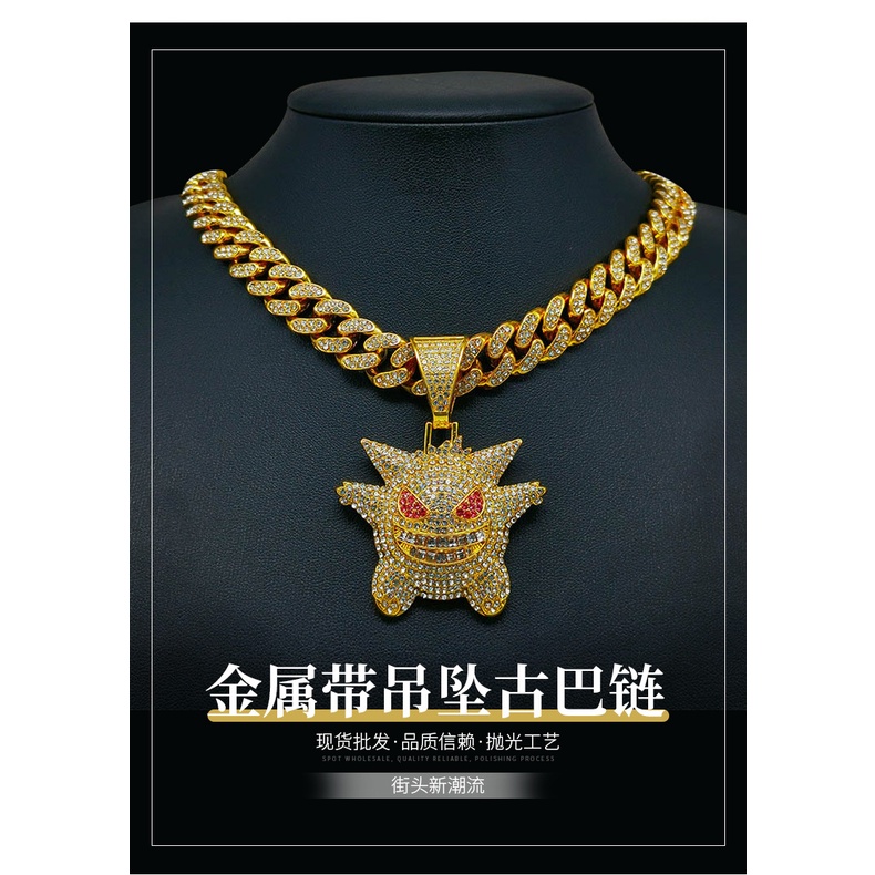 [MAOINGMEN] Men's Necklace Trendy Cuban Chain Strap Pendant Gengar Chain Cartoon Shape Gold Silver Metal Cuban Chain