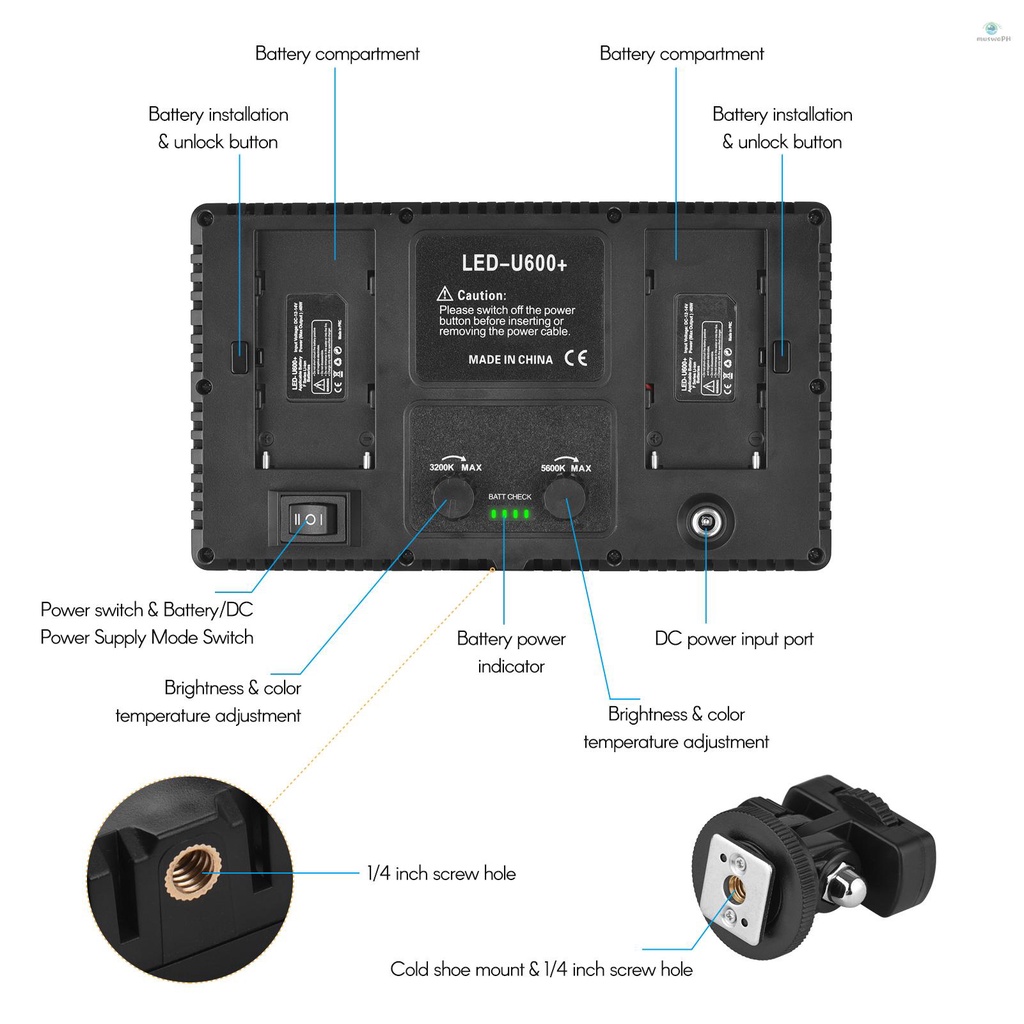 [MAPH] Andoer LED-600 LED Video Light Professional Photography Light Panel 600PCS Bright Light Beads Adjustable Bi-Color Temperature 3200-5600K Dimmable Brightness with Barndoor 1/