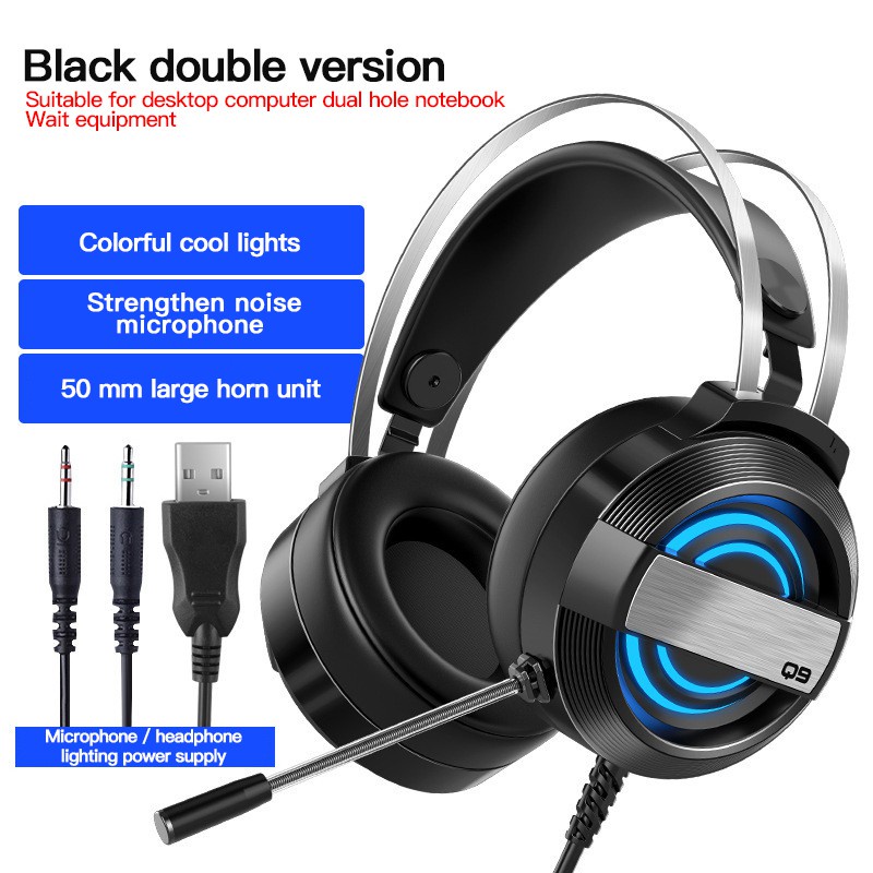 [Manila Ship] NEW Q9 7 Colors Light Gaming Headset with Mic ENC Noise Reduction HiFi 7.1 Channel RGB Wired Headphone For PC PS4 XBOX