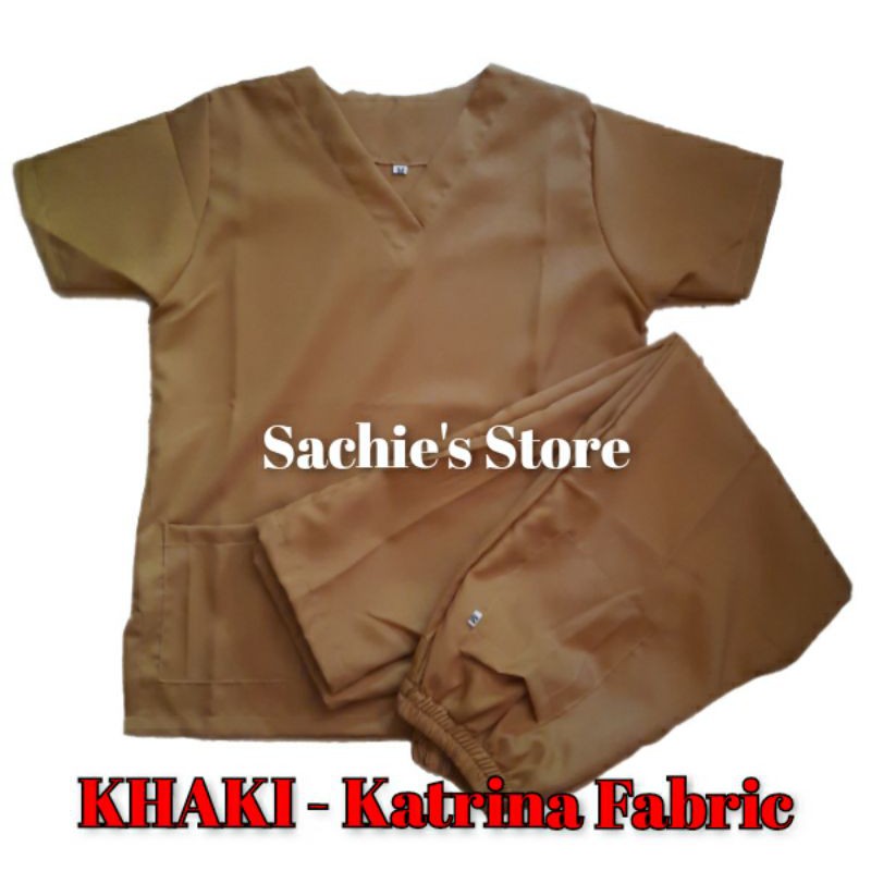 [Medical Uniform Unisex] Khaki Plain Scrub Suit VNeck (Katrina Scrubsuit)