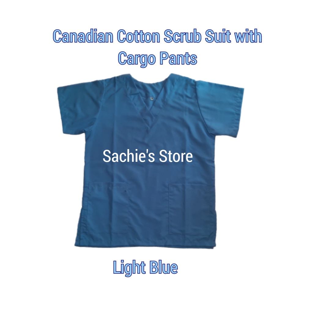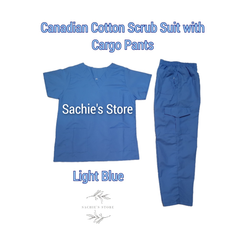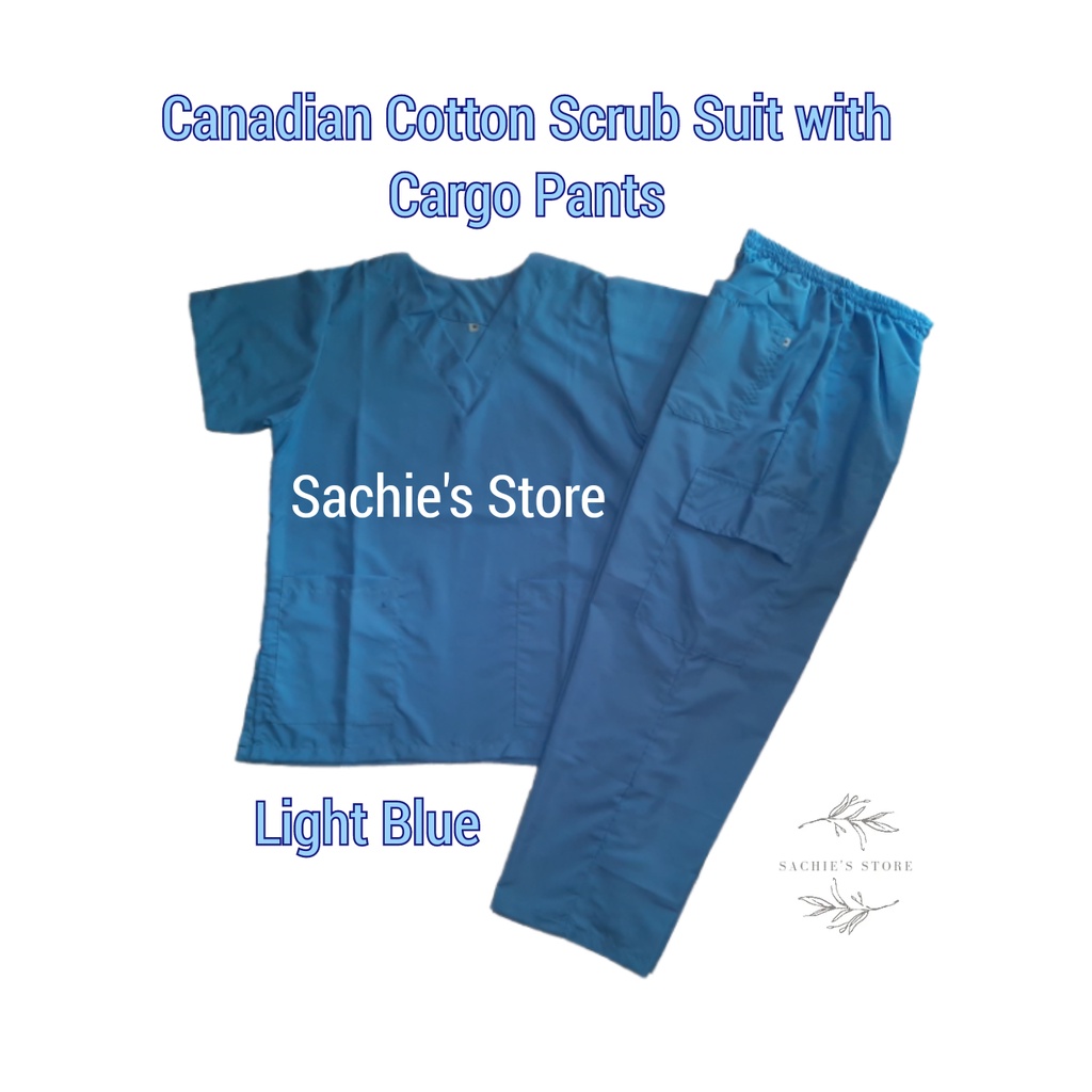 [Medical Uniform Unisex] Light Blue Plain Scrub Suit VNeck w/Cargo Pants (Cotton Scrubsuit)