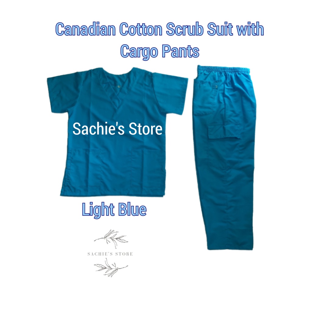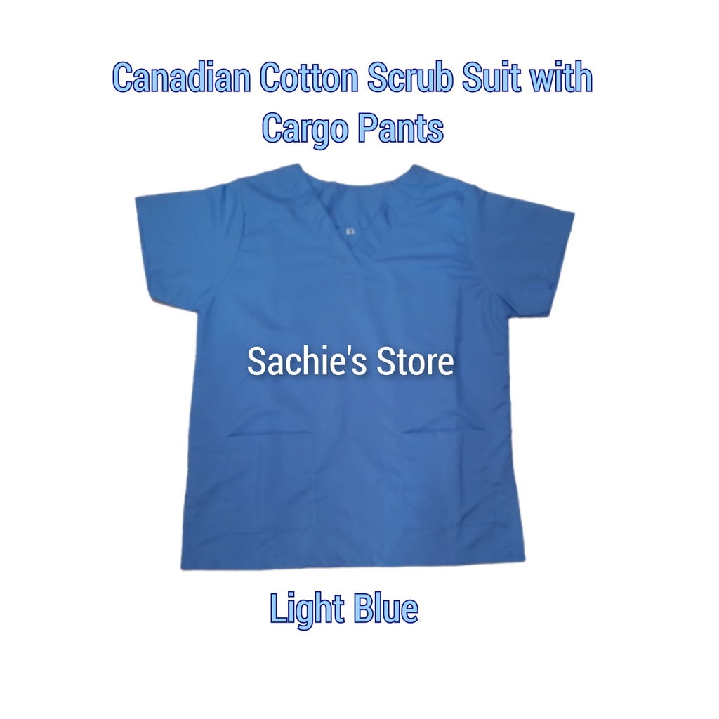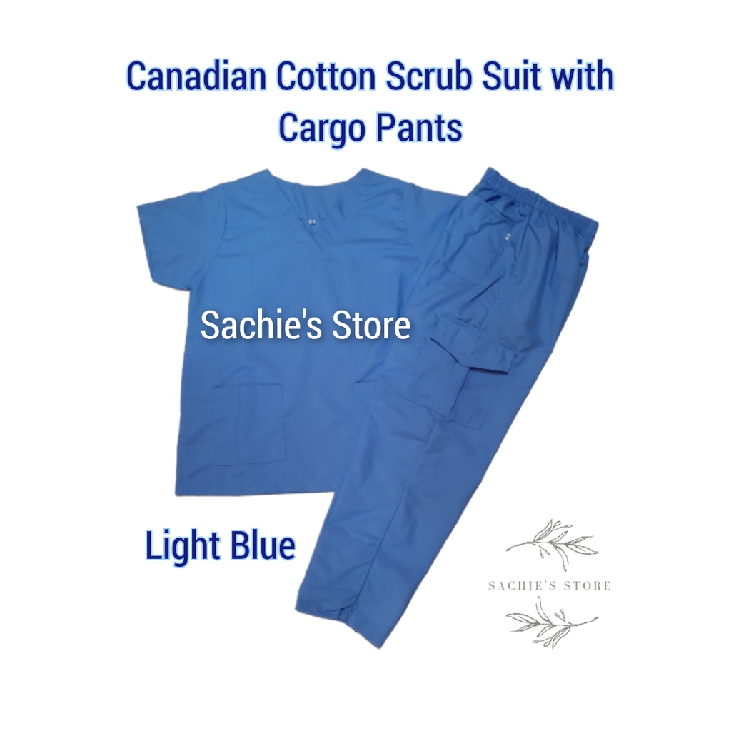 [Medical Uniform Unisex] Light Blue Plain Scrub Suit VNeck w/Cargo Pants (Cotton Scrubsuit)