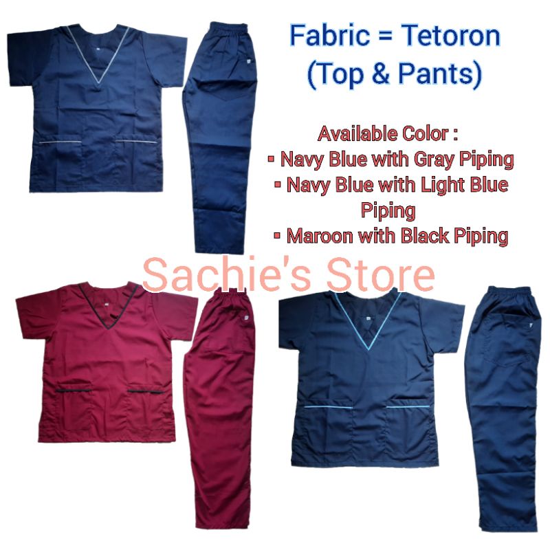[Medical Uniform Unisex] Scrubsuit Set VNeck with Piping (Maroon & Navy Blue - Tetoron Scrub Suit)