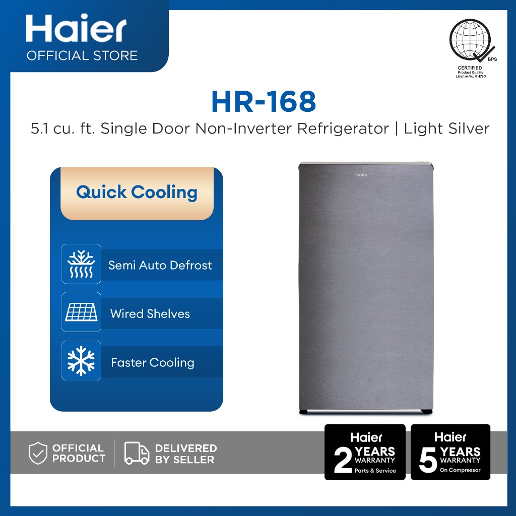 [NEW] Haier HR-168 5.12 cu.ft./145L Single Door Refrigerator (Light Silver) - Updated 2023 Model