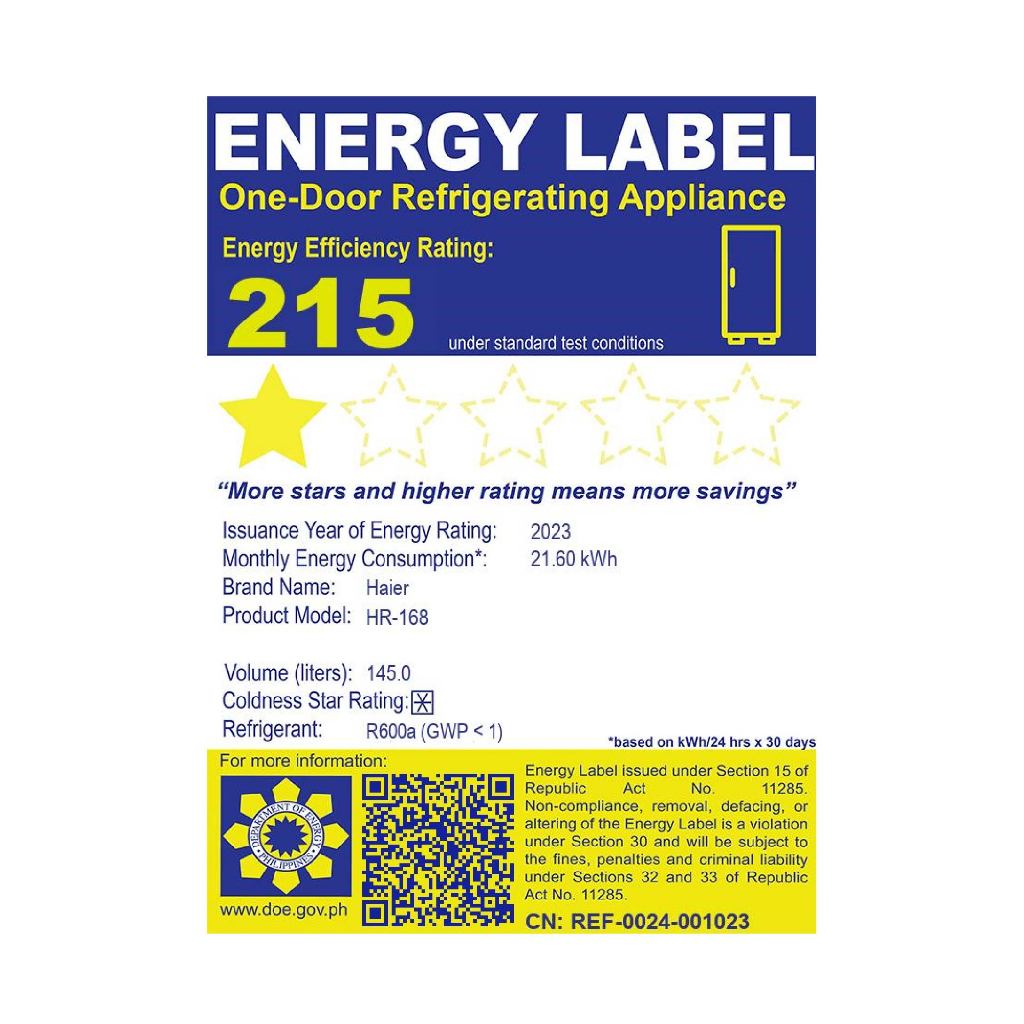 [NEW] Haier HR-168 5.12 cu.ft./145L Single Door Refrigerator (Light Silver) - Updated 2023 Model