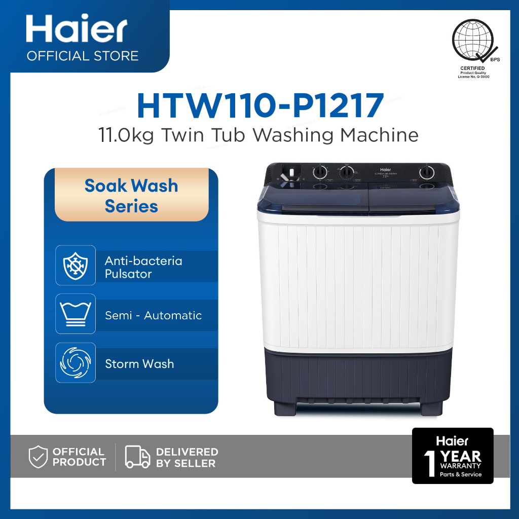 [NEW] Haier HTW110-P1217 11 kg Soak Wash Twin Tub Washing Machine with Dryer