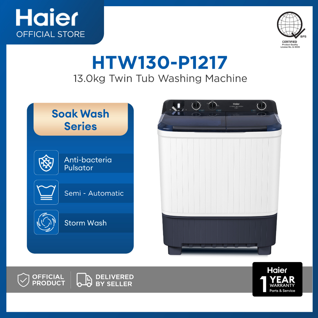 [NEW] Haier HTW130-P1217 13 kg Soak Wash Twin Tub Washing Machine with Dryer